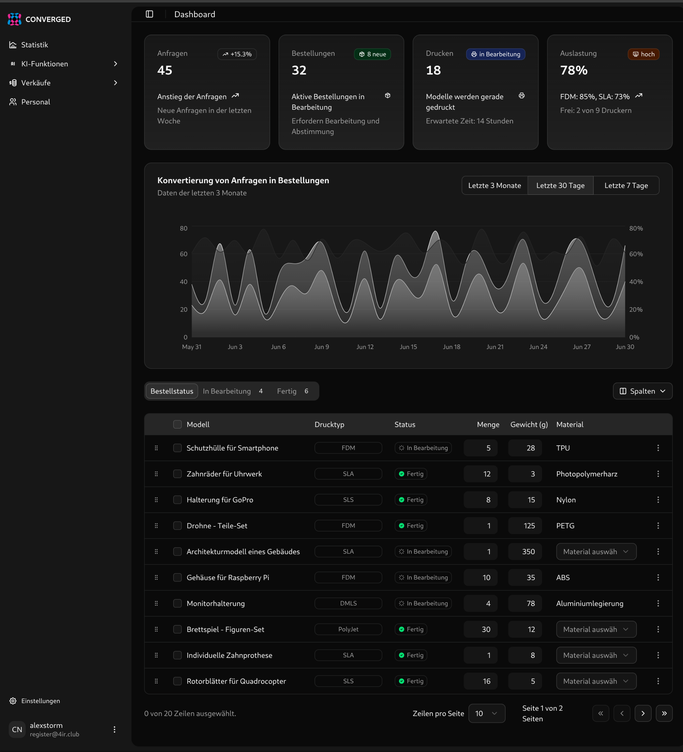 Anfragen werden automatisch aus Nischenanfragen, Ausschreibungen und Anzeigenbörsen im gesamten Internet gesammelt. Die KI wählt sie aus und leitet sie nur an jene Unternehmen weiter, die den Auftrag tatsächlich ausführen können. Dadurch sinken die Kosten für die Kundengewinnung um das 5- bis 10-Fache.