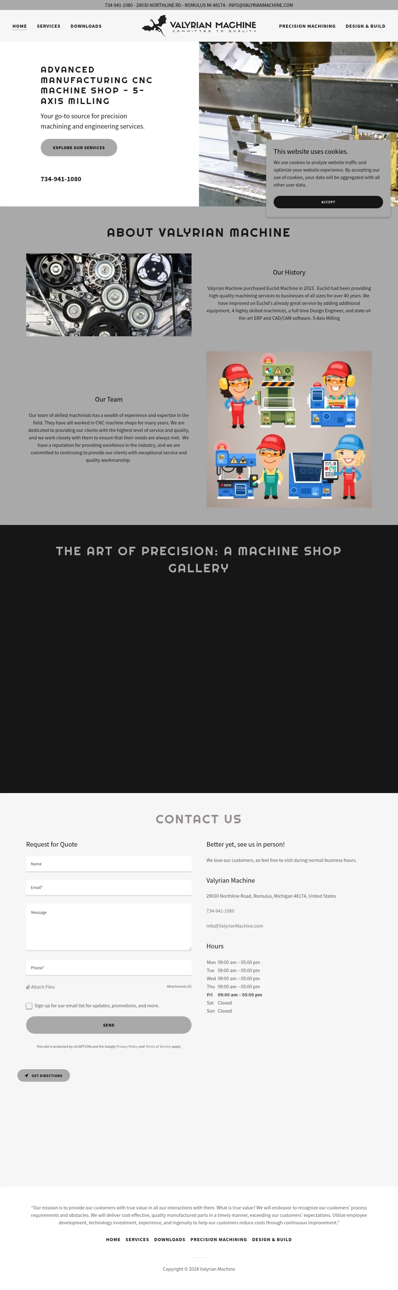 Valyrian Machine is a professional CNC manufacturing facility located in Romulus, Michigan, specializing in advanced precision machining and engineering solutions. The company offers a wide range of capabilities, including 5-axis milling, complex assembly, and custom design-and-build services. With a commitment to rigorous quality control standards, they support clients by providing manufactured parts that meet exact specifications and process requirements. By utilizing modern technology and focusing on continuous improvement, Valyrian Machine helps partners reduce costs and streamline their supply chains. Their operations are supported by comprehensive inspection processes to ensure high-quality, cost-effective, and timely delivery.