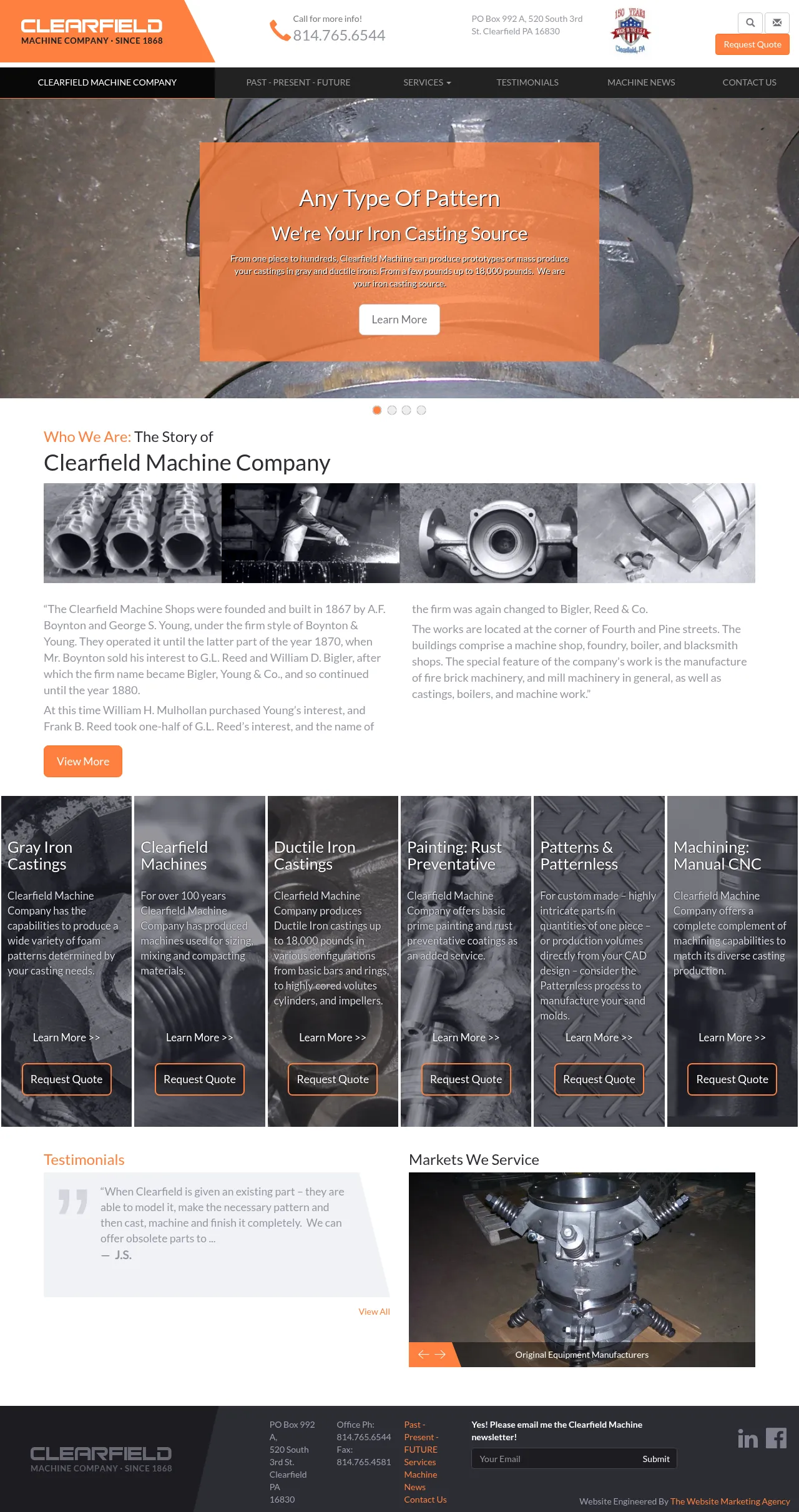 Clearfield Machine Company is an established manufacturer specializing in industrial iron castings and machinery. The company produces components such as impellers, cylinders, and volutes in gray and ductile iron, catering to industries including original equipment manufacturing, construction, and pump production. They offer comprehensive capabilities ranging from pattern making and sand casting to manual and CNC machining. With over 150 years of experience, the firm supports both custom one-off projects and large-scale production runs. Additionally, they provide protective coating services and assist in the replacement of obsolete machinery components.