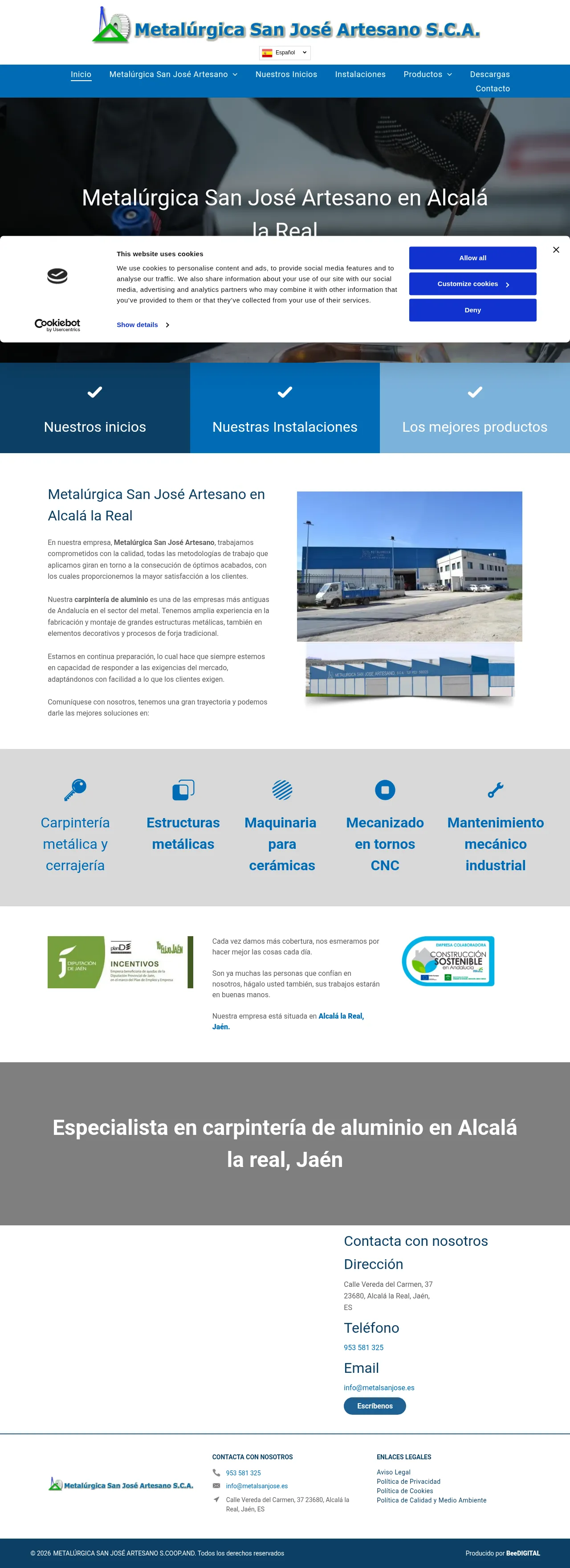 Junto al Parque de Bomberos, C. Vereda del Carmen, 37, 23680 Alcalá la Real, Jaén, Spain, Alcalá la Real, Andalusia, Kingdom of Spain953 58 13 25info@metalsanjose.eshttp://www.estructuras-metalicas.net/