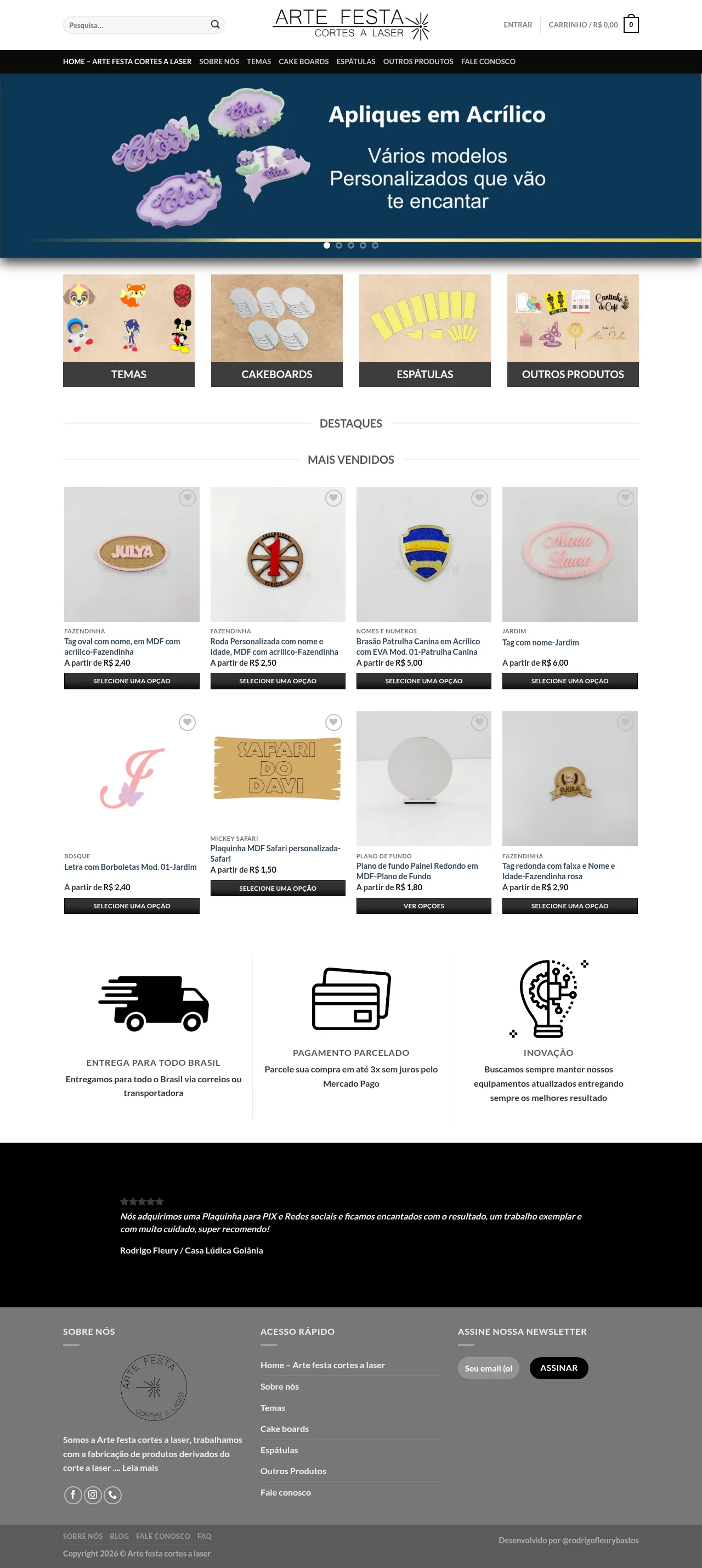 Arte Festa Cortes a Laser is a Brazil-based manufacturer specializing in precision laser-cut products for crafts, home decor, and the confectionery industry. Established in 2018, the company produces a wide array of items including personalized appliques, cake toppers, signage, and custom display pieces. They serve both retail customers and professional artisans, offering custom solutions for events such as birthdays, maternity celebrations, and thematic parties. The business operates primarily through a virtual store and provides nationwide shipping across Brazil.