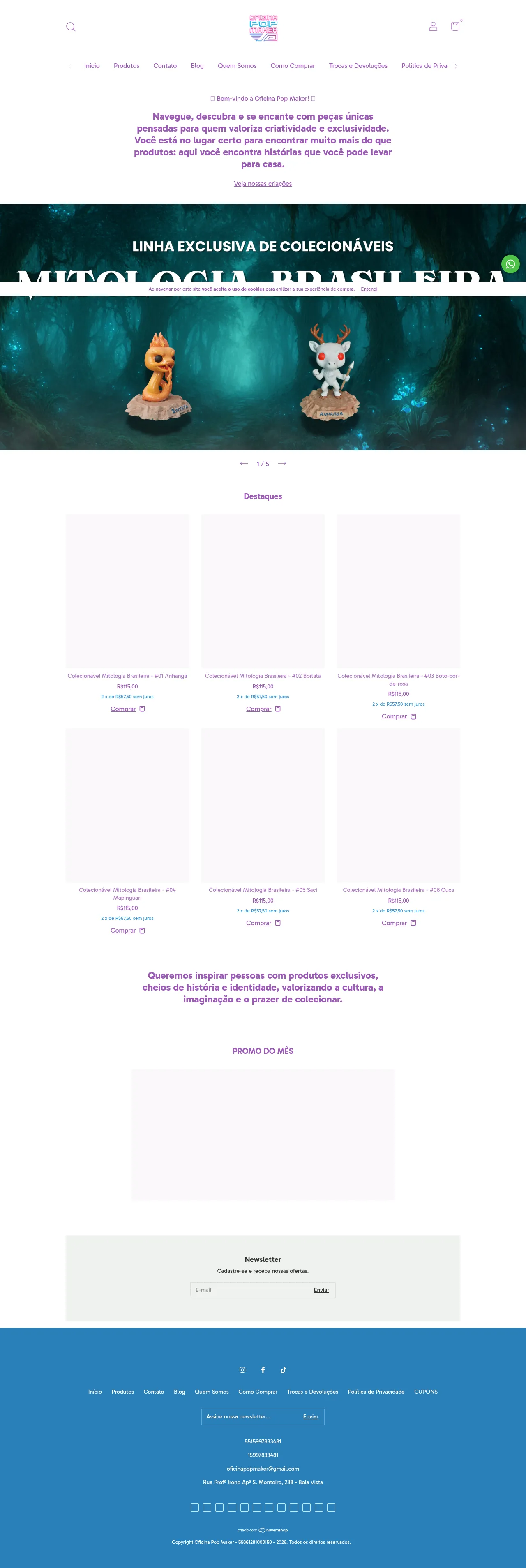 R. Profa. Irene Aparecida Santiago Monteiro, 238 - Vila Bela Vista, Capão Bonito - SP, 18301-175, Brazil, Capão Bonito, São Paulo, Federative Republic of Brazil(15) 99783-3481oficinapopmaker@gmail.comhttps://oficinapopmaker.lojavirtualnuvem.com.br/