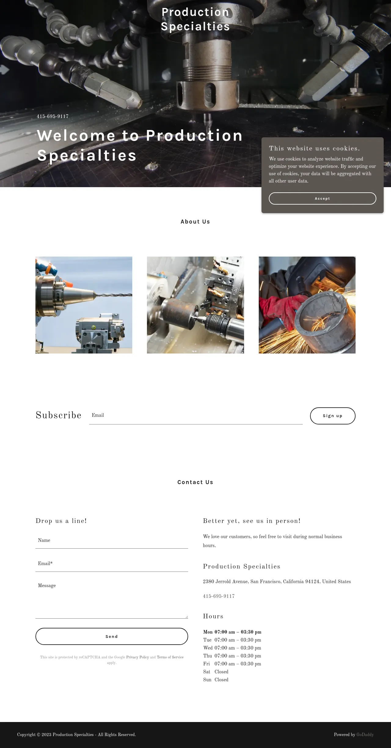 Production Specialties is a manufacturing facility based in San Francisco, California. The company provides industrial production services to support client projects and manufacturing requirements. They maintain a facility for customer visits and direct professional engagement. The company operates on a standard weekday schedule to accommodate client inquiries and production requests.