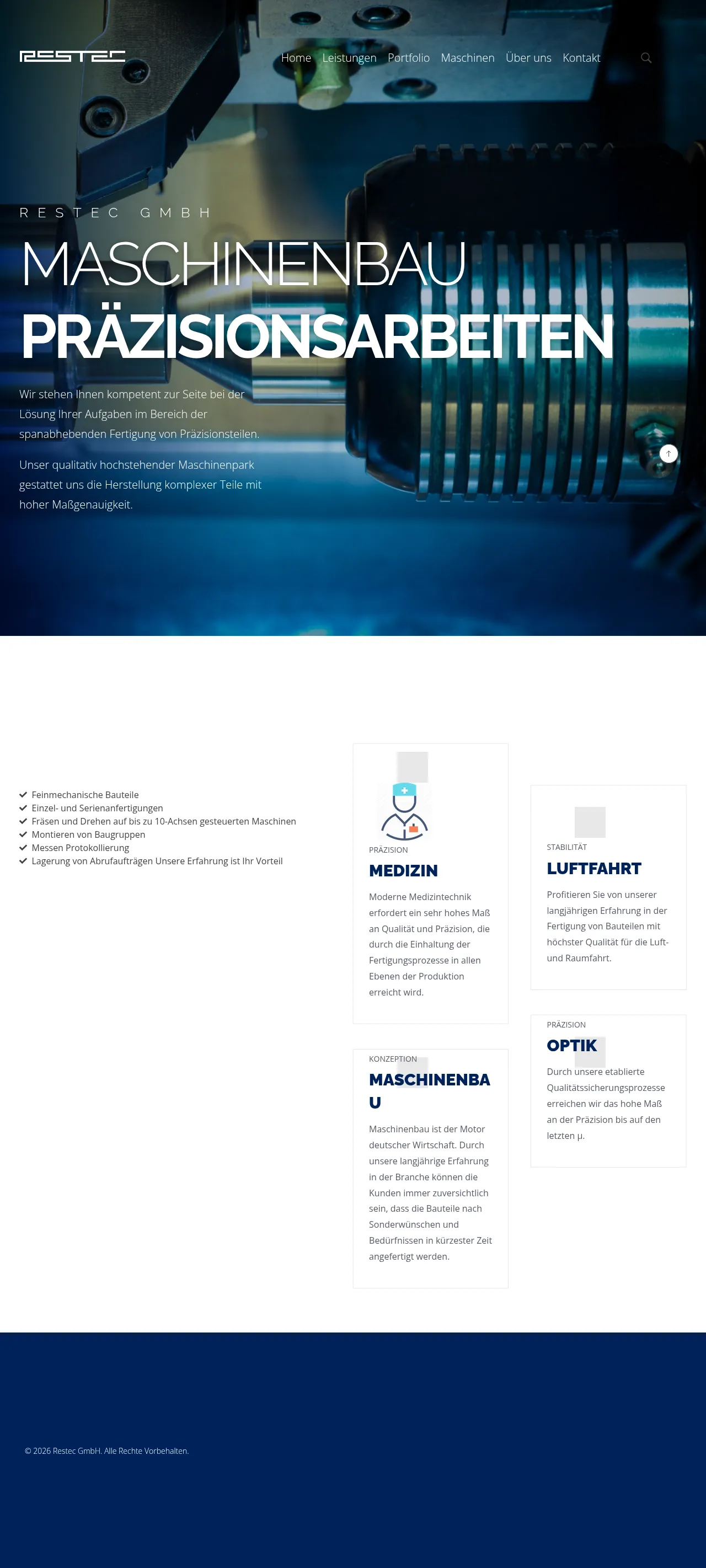 Restec GmbH is a precision mechanical engineering company based in Rosenheim, specializing in high-accuracy CNC machining for complex components. The firm provides a comprehensive suite of services including 10-axis milling and turning for both individual prototypes and large-scale series production. They serve highly regulated sectors such as aerospace, medical technology, and optics, maintaining rigorous quality assurance standards down to the micron level. Beyond manufacturing, the company offers component assembly, measurement logging, and conceptual design services. Restec GmbH further supports its clients with specialized logistics, including the storage of call-off orders to ensure efficient supply chain integration.