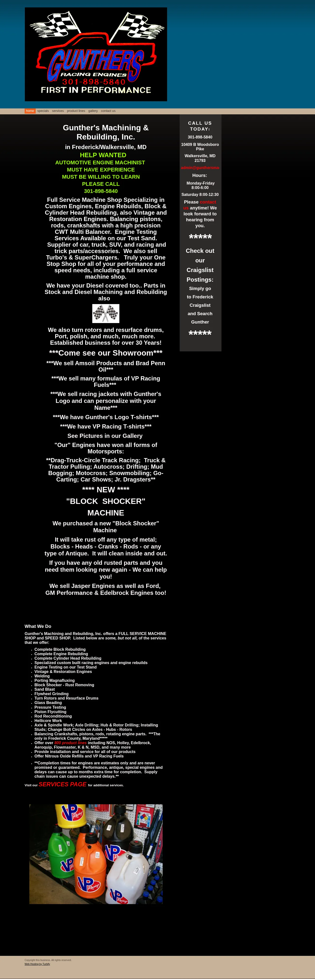 10409 Woodsboro Pike B, Walkersville, MD 21793, USA, Frederick, Maryland, United States(301) 898-5840http://gunthersmachine.com/