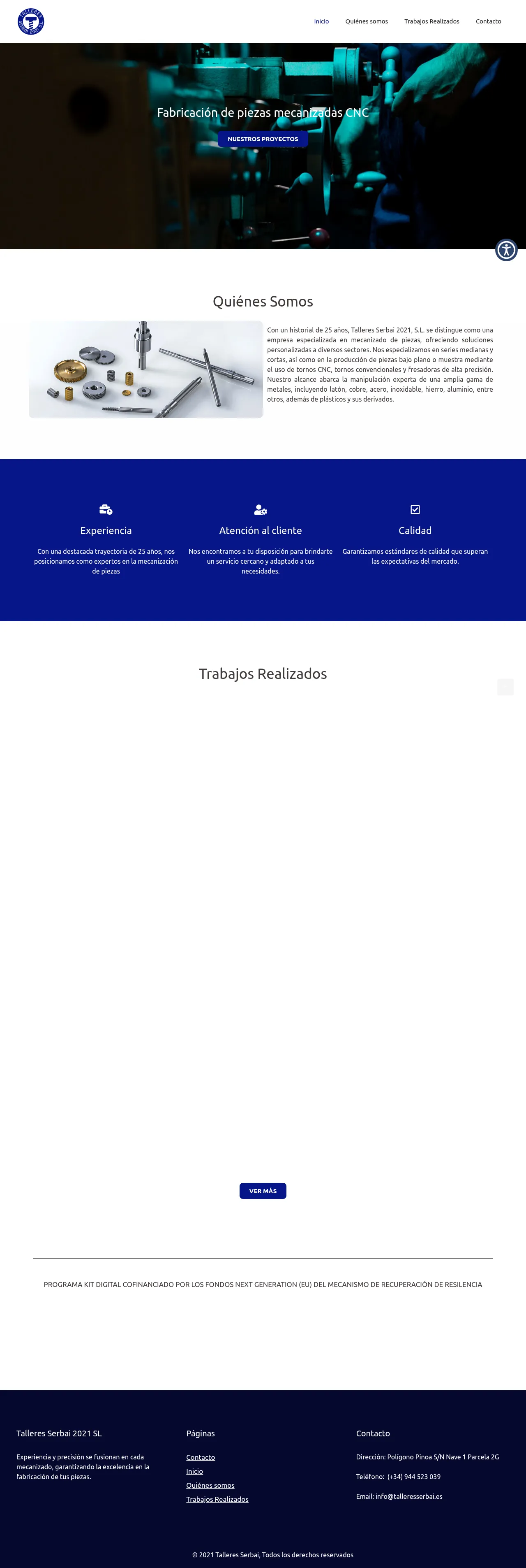 Talleres Serbai 2021, S.L. is a CNC machining workshop with 25 years of experience producing precision components. The company specializes in short- and medium-run series and manufactures parts from drawings or samples using CNC lathes, conventional lathes and high-precision milling equipment. It works with a broad range of metals and plastics for custom and production machining.