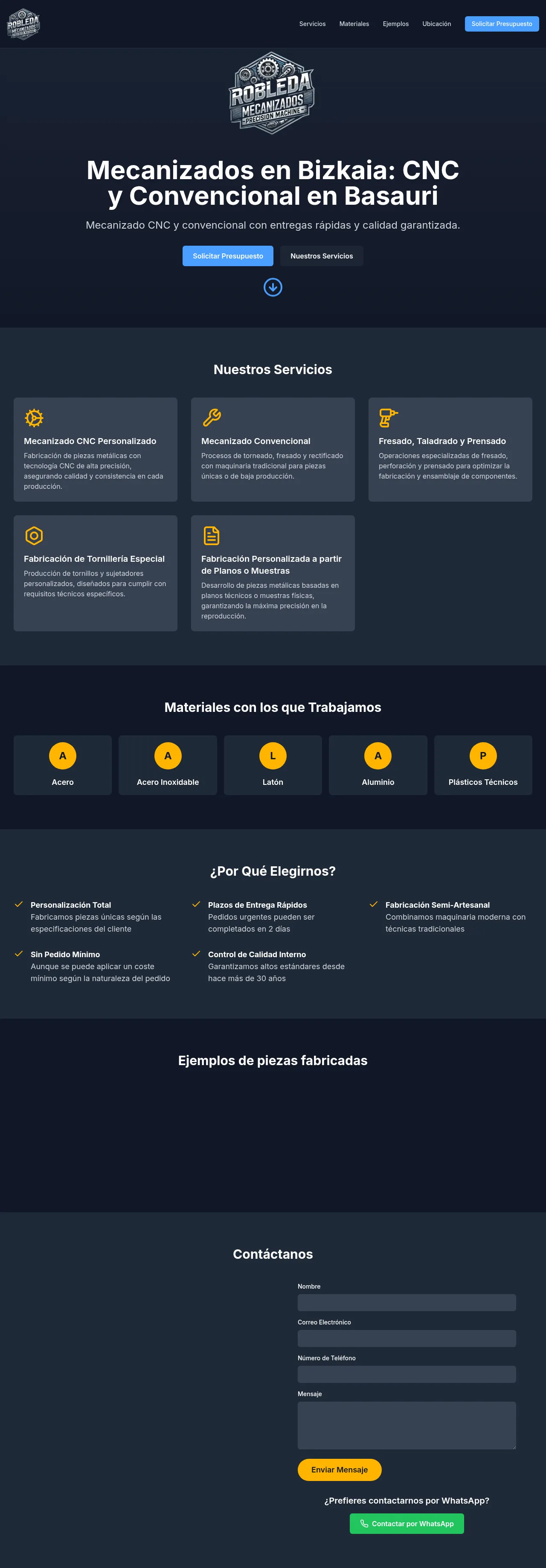Mecanizados Robleda is a precision machining workshop located in Basauri, Bizkaia, providing CNC and conventional machining for bespoke metal components and fasteners. The company manufactures custom screws and small-series parts from technical drawings or physical samples, combining modern CNC equipment with traditional, semi-artisanal processes. Operations include turning, milling, drilling, pressing and grinding under internal quality control, with the capacity to handle urgent orders and short lead times.