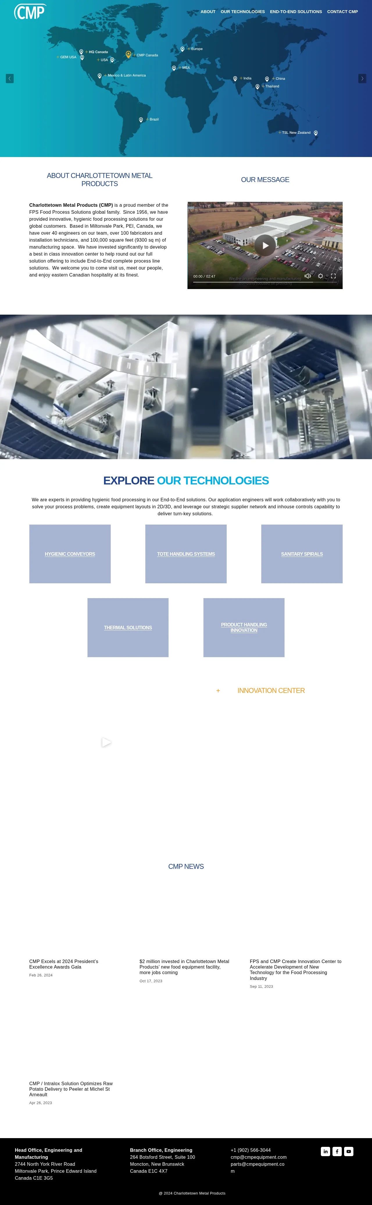 Charlottetown Metal Products (CMP) is a designer and manufacturer of hygienic food processing equipment and end-to-end production line solutions. The company serves the prepared foods, bakery, and seafood industries by providing custom-engineered systems for product handling, thermal processing, and conveyance. Their expertise includes 2D and 3D equipment modeling, in-house controls integration, and strategic project management to deliver turnkey processing facilities. By prioritizing sanitary design and efficient workflow, CMP develops solutions that address unique production challenges while meeting industry health and safety standards.