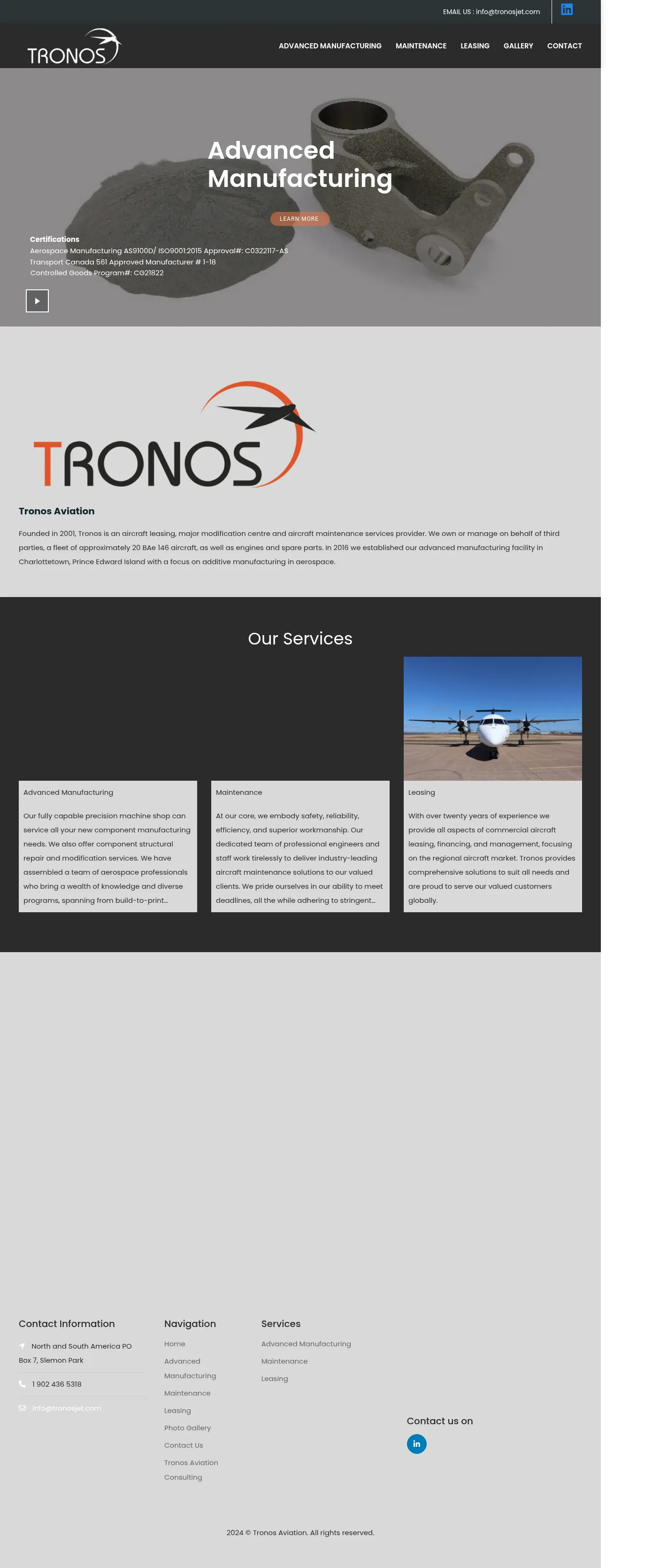 Founded in 2001, Tronos is a comprehensive provider of aircraft leasing, heavy maintenance, and advanced manufacturing services. The company manages a fleet of regional aircraft, including BAe 146, Dash 8, Q400, and ATR models, while offering engineering and modification solutions. Their facility in Charlottetown specializes in aerospace-grade additive manufacturing and precision machining. Tronos serves the global aviation industry by delivering component repair, manufacturing, and technical support. They maintain stringent safety and quality standards across all maintenance and production operations.