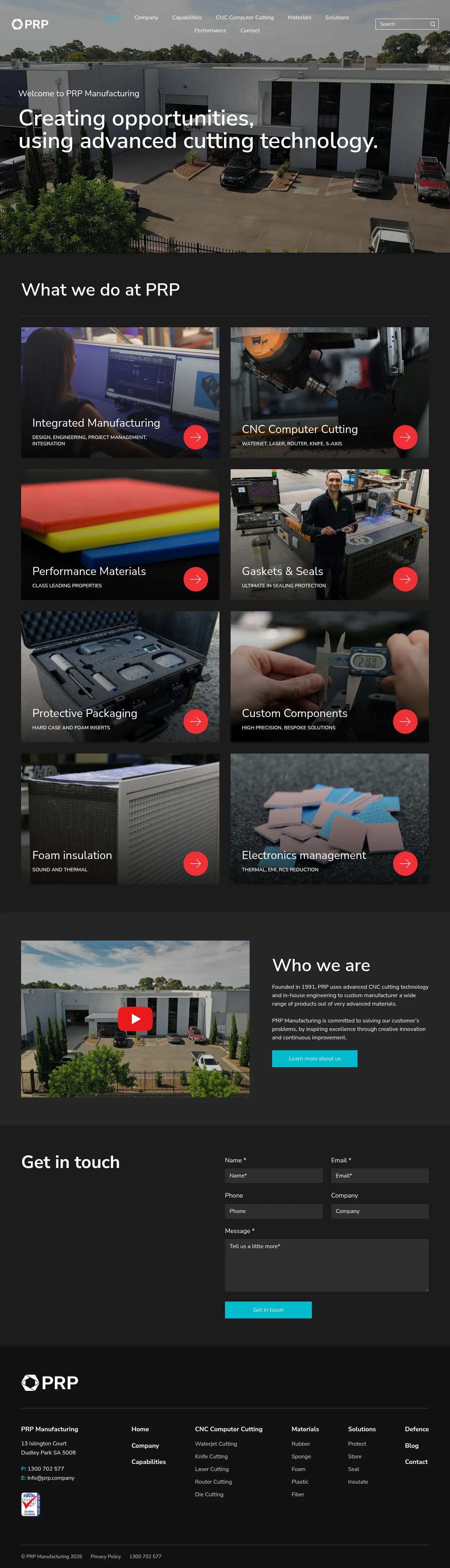 Established in 1991, PRP Manufacturing provides advanced CNC cutting and fabrication services for a diverse range of industries, including the defense sector. The company specializes in the precision processing of materials for applications involving thermal management, electromagnetic shielding, vibration damping, and impact protection. Their facility features comprehensive production capabilities such as waterjet, laser, router, and die cutting to deliver custom gaskets, seals, foam inserts, and protective storage solutions. Utilizing in-house engineering and advanced materials, PRP focuses on solving complex customer requirements through technical innovation and consistent manufacturing excellence.