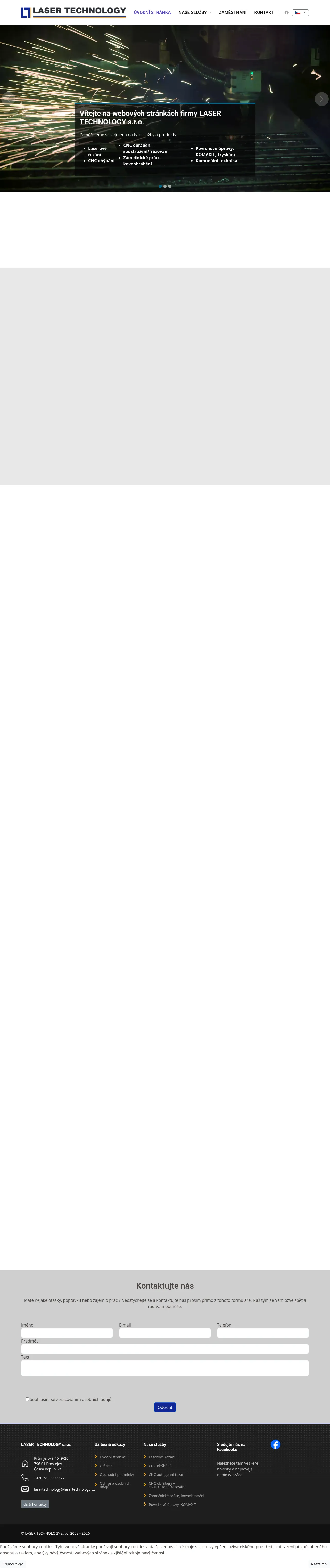 Průmyslová 20, 796 01 Prostějov-Prostějov 1, Czechia, Prostějov, Olomoucký kraj, Czechia582 330 077lasertechnology@lasertechnology.czhttp://www.lasertechnology.cz/