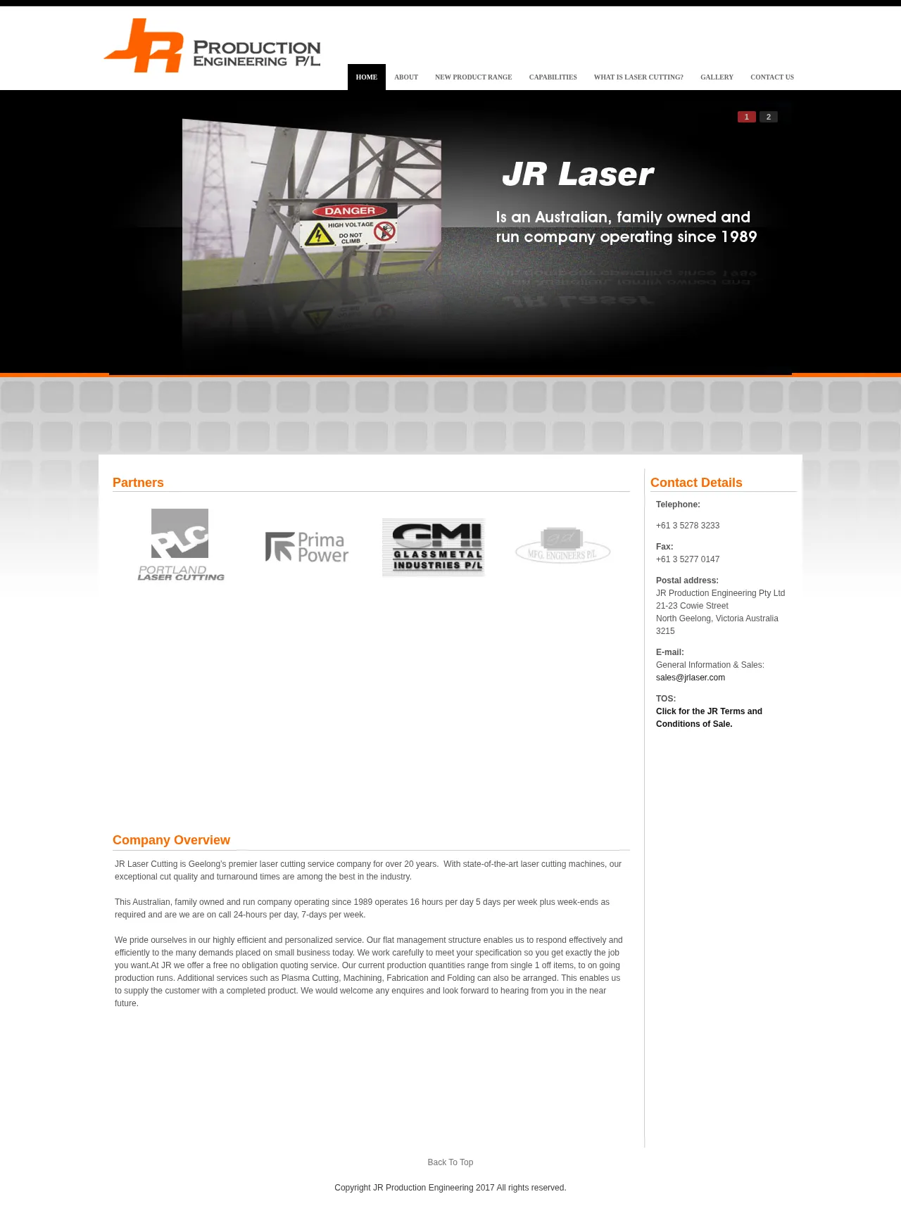 JR Production Engineering Pty Ltd provides laser cutting capabilities and related production engineering services from its facility in North Geelong, Victoria. The company performs precision cutting of sheet and plate using industrial laser equipment and supports component production for manufacturing customers. It operates as a service provider for metal processing and part fabrication needs.