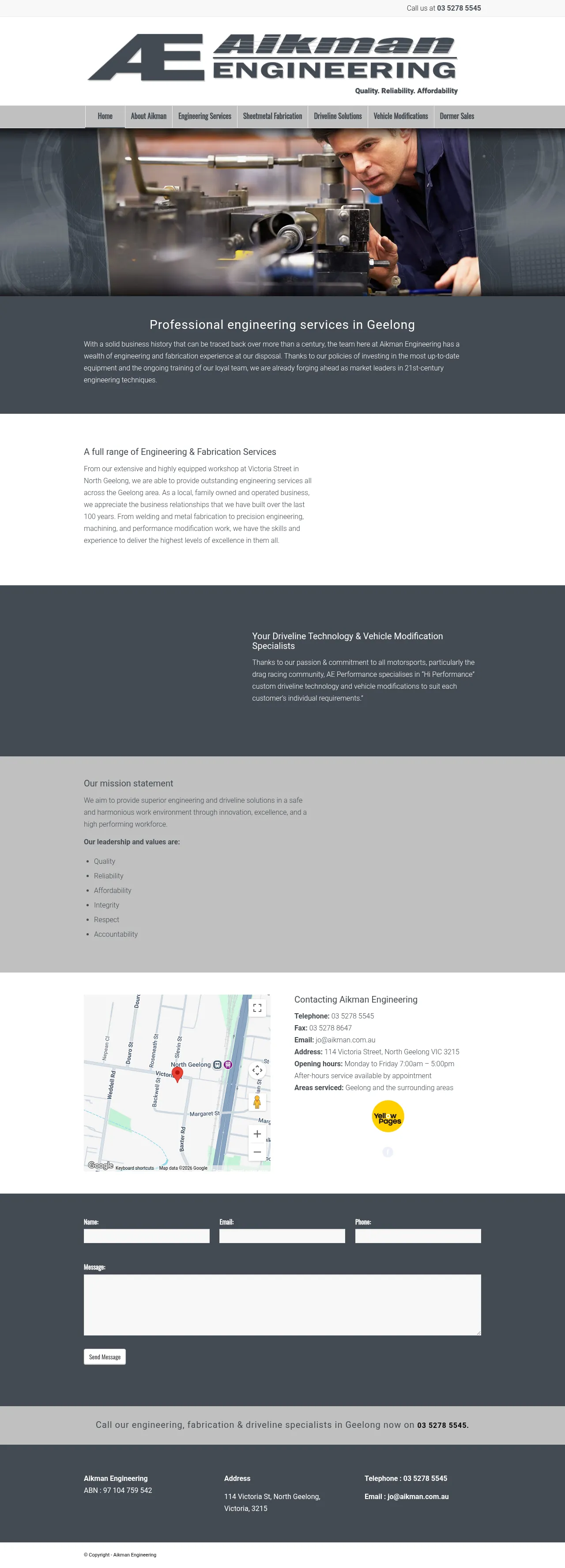 Aikman Engineering is a family-owned engineering and fabrication business based in North Geelong with a history spanning more than a century. From a fully equipped workshop on Victoria Street the company provides welding, metal fabrication, precision engineering and machining services across the Geelong region. It also offers driveline solutions and vehicle performance modification work. The business emphasizes ongoing investment in equipment and staff training.