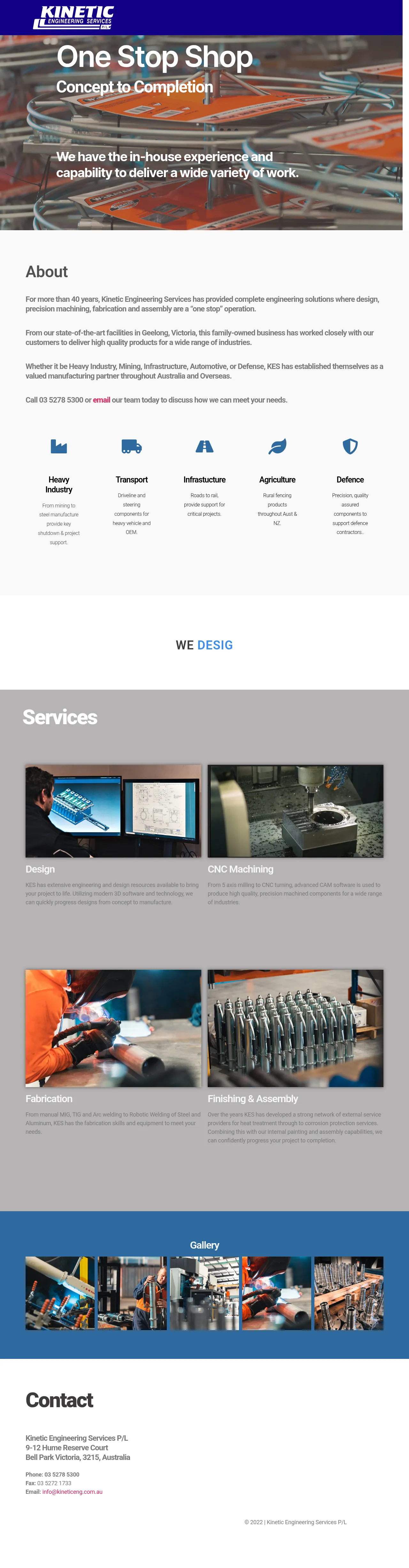 Kinetic Engineering is a family-owned Australian engineering and manufacturing company with more than 40 years of industry experience. Operating from facilities in Geelong, Victoria, the company provides engineering design, precision machining and fabrication services. It supports a wide range of industries with component manufacture, welding, painting and assembly services.