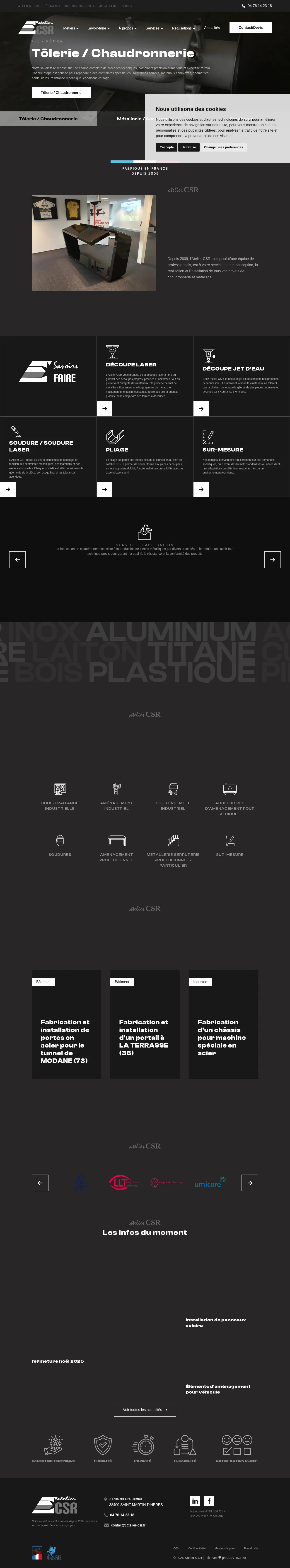 Atelier CSR is a metalworking and boiler-making company based in France, specializing in the design, fabrication, and installation of custom metal components for industrial, professional, and residential sectors. Since 2009, the company has provided comprehensive metal solutions including structural elements, industrial machine frames, vehicle outfitting, and precision metal parts. Their technical capabilities span from laser and waterjet cutting to advanced welding techniques and specialized bending. The firm serves a diverse client base by offering tailored engineering, project management, and on-site installation services. As a member of the French Fab, Atelier CSR emphasizes proximity, reactivity, and quality-driven manufacturing processes.