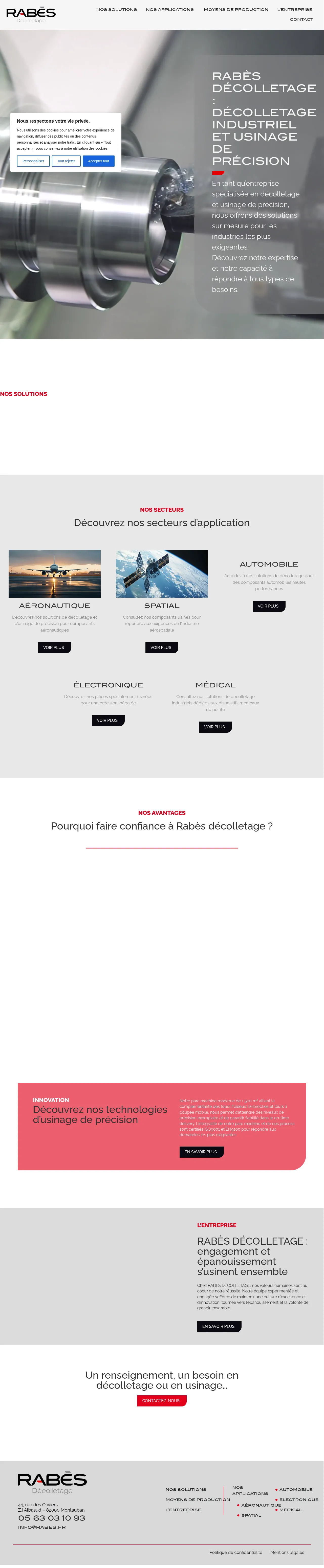 Rabès Décolletage is an industrial machining specialist based in Montauban, France, with over 50 years of experience in high-precision parts manufacturing. The company focuses on turning and milling operations for small to medium-sized production runs. They serve highly regulated sectors including aerospace, defense, automotive, medical, and electronics. The facility utilizes a modern 1,500-square-meter production area equipped with dual-spindle turning centers and sliding headstock lathes. The firm emphasizes quality, reactivity, and strict adherence to on-time delivery schedules.