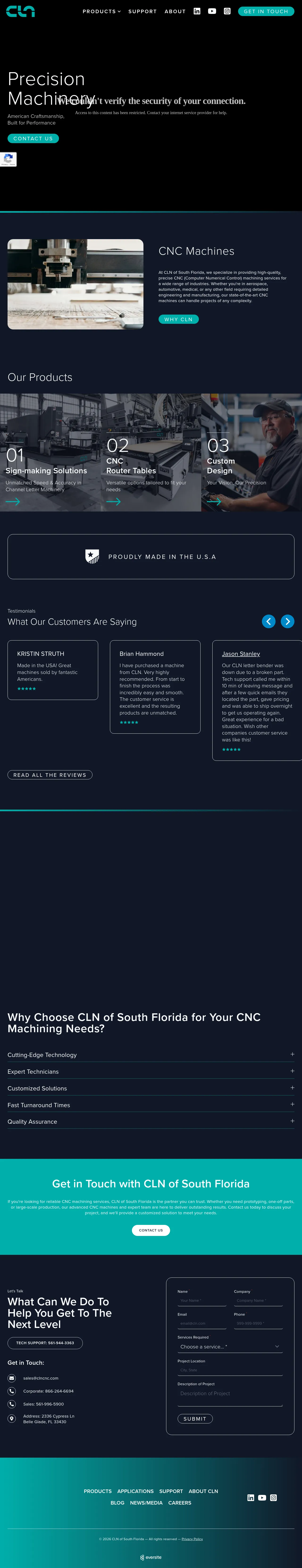 CLN of South Florida is an American manufacturer specializing in the design and production of industrial CNC machinery. Originally established in 1997, the company provides automated equipment for the sign-making, aerospace, and medical sectors. Their product range includes custom CNC router tables, plasma cutters, and automated channel letter bending machinery. The company emphasizes in-house engineering and production to maintain strict quality standards and provides comprehensive technical support for its installed machine base. All machinery is developed and supported from their Florida headquarters to ensure operational longevity and efficient part replacement.
