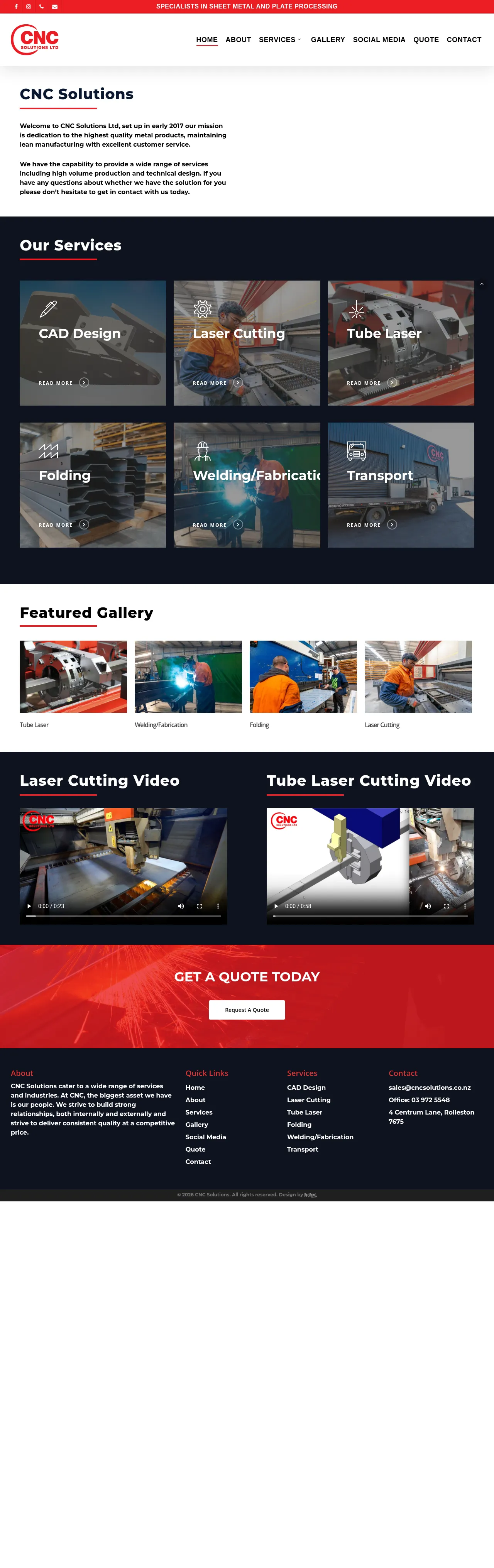 CNC Solutions Ltd is a New Zealand-owned metal fabrication company based in Rolleston, Canterbury, specializing in precision sheet metal and plate processing. The firm provides comprehensive manufacturing services including CAD design, high-precision laser cutting, tube laser processing, and metal folding. With expertise in both MIG and TIG welding, the company supports a diverse range of projects from single custom components to high-volume industrial production runs. Their facility utilizes advanced CNC machinery to maintain tight manufacturing tolerances and consistent quality across all client deliverables. The team provides engineering solutions to businesses throughout New Zealand, including Auckland, Wellington, and the wider Canterbury region.