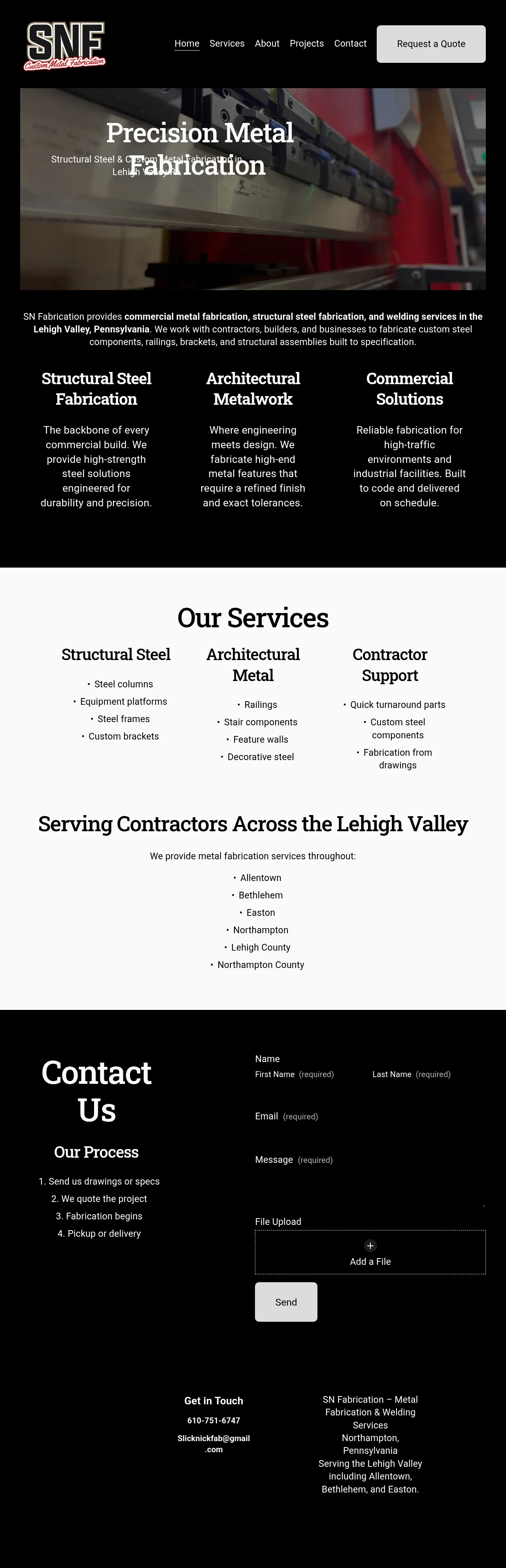 S&N Fabrication provides precision metal fabrication services for contractors, architects, and business owners throughout the Lehigh Valley. The company specializes in structural steel fabrication, architectural metalwork, and high-integrity welding for commercial applications. With capabilities including CNC plasma cutting and press brake forming, they manage the full project lifecycle from technical specifications to final assembly. Their approach emphasizes technical accuracy and structural reliability in every component. S&N Fabrication delivers custom solutions ranging from complex frameworks and mezzanines to detailed architectural components.