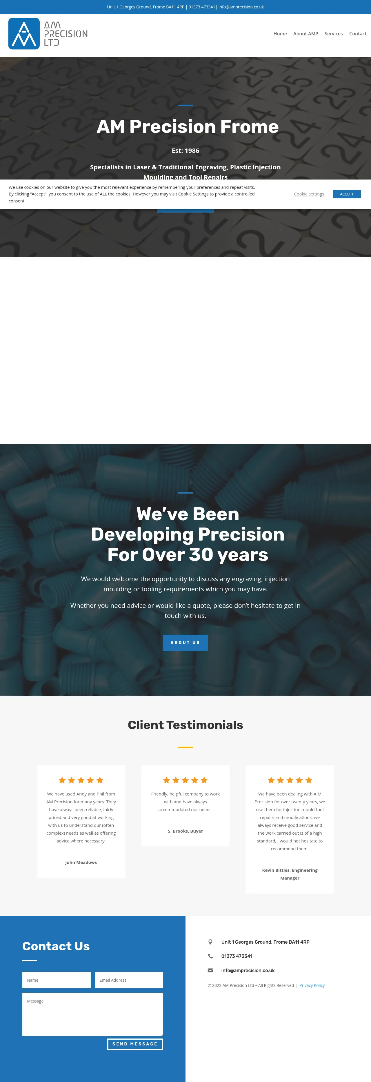 AM Precision Ltd is a family-run manufacturing business based in Frome, Somerset, with operations dating back to 1986. The company specializes in plastic injection moulding, precision toolmaking, and both laser and traditional pantograph engraving services. They serve a diverse international clientele, including manufacturers of auditorium seating, the Post Office, and the automotive, medical, and food industries. With over 30 years of experience, the firm provides high-volume production for custom plastic parts and maintains a focus on mould tool repair. The company is committed to clear communication and timely service for both industrial partners and ad hoc custom projects.