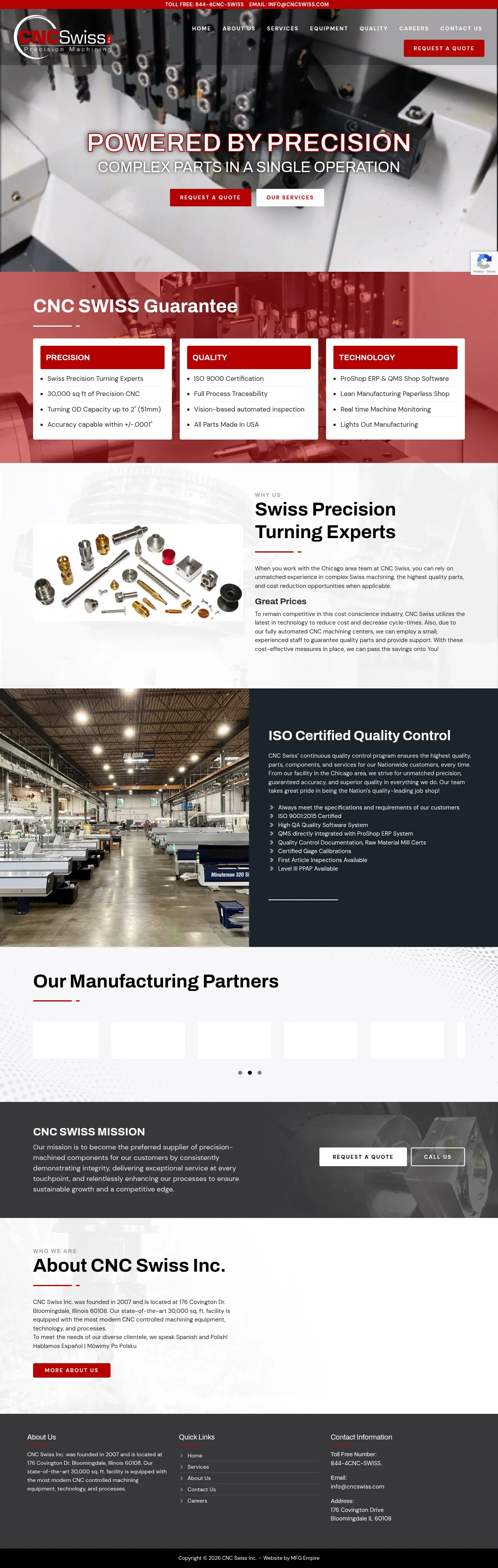 CNC Swiss Inc. is a precision machining job shop based in Bloomingdale, Illinois, specializing in complex Swiss-style turning operations. Founded in 2007, the company operates a 30,000-square-foot facility focused on high-accuracy component manufacturing for nationwide clients. Their capabilities include automated CNC machining, lean manufacturing processes, and comprehensive quality control, ensuring high-volume consistency with tight tolerances. The organization emphasizes cost-efficiency through technology integration and real-time machine monitoring. They provide full process traceability and adherence to rigorous quality standards for all manufactured parts.