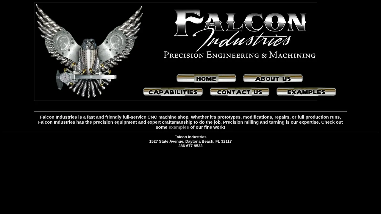 Falcon Industries is a full-service CNC machine shop based in Daytona Beach, Florida. The company provides precision milling and turning services to support a variety of industrial applications. Their manufacturing capabilities accommodate everything from rapid prototyping and small-batch modifications to high-volume production runs. Known for expert craftsmanship, the shop serves diverse sectors requiring precise metalworking and component repair. Falcon Industries emphasizes a responsive and service-oriented approach to meeting client manufacturing specifications.
