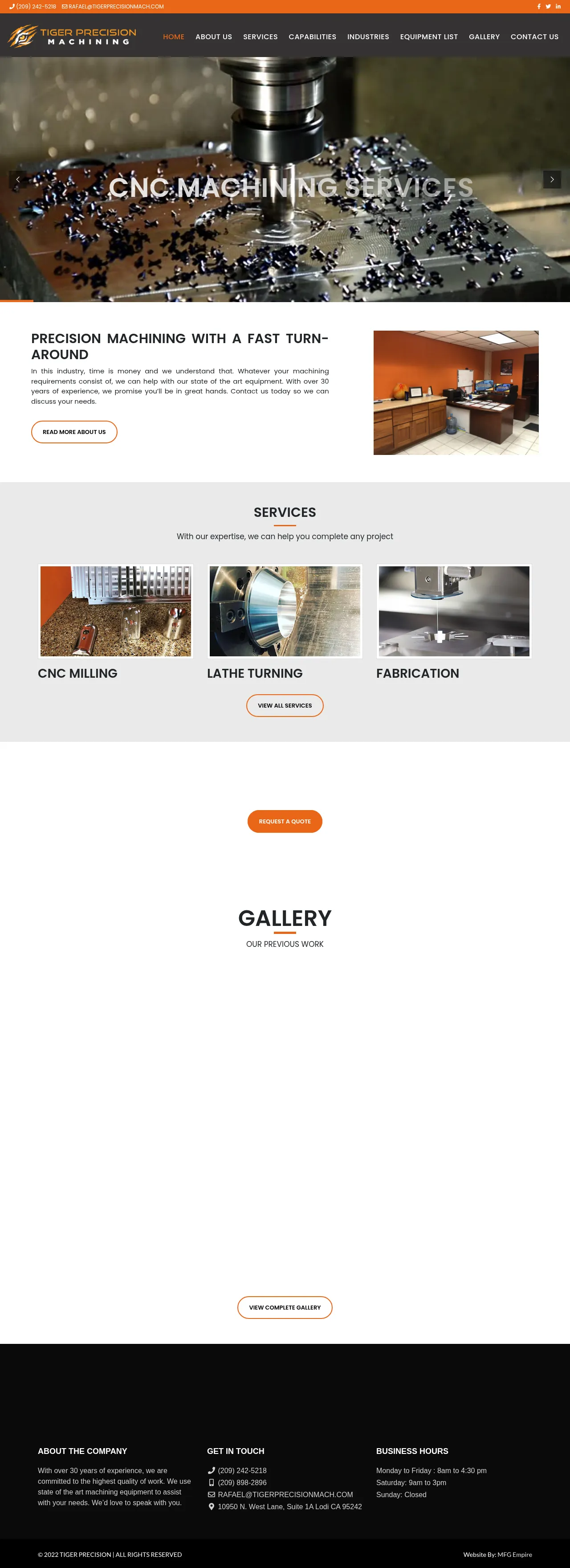 10950 West Ln suite 1a, Lodi, CA 95242, USA, Lodi, California, United States(209) 242-5117RAFAEL@TIGERPRECISIONMACH.COMhttps://tigerprecisionmach.com/