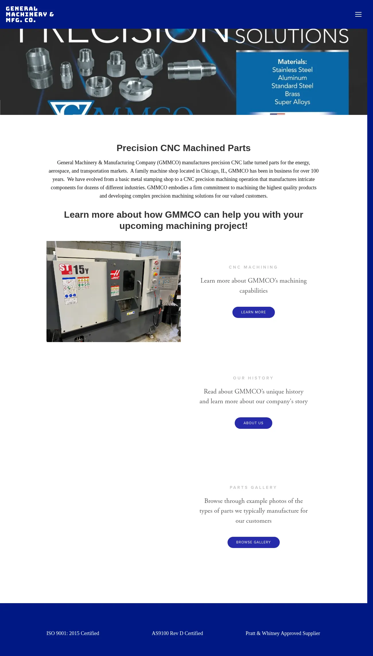 GMMCO is a Chicago-based manufacturer specializing in precision CNC machining, including multi-axis milling and turning for complex components. The company serves diverse industries such as oil and gas, transportation, and laboratory equipment, providing services from prototyping to high-volume production. They maintain comprehensive quality management systems and offer secondary processes including heat treating, plating, and specialized protective packaging. Committed to domestic manufacturing, GMMCO ensures all materials are DFARS-compliant and provides full traceability through inspection reports and certificates of conformance. The firm is equipped to handle tight-tolerance requirements with a focus on delivering high-quality, defect-free parts.