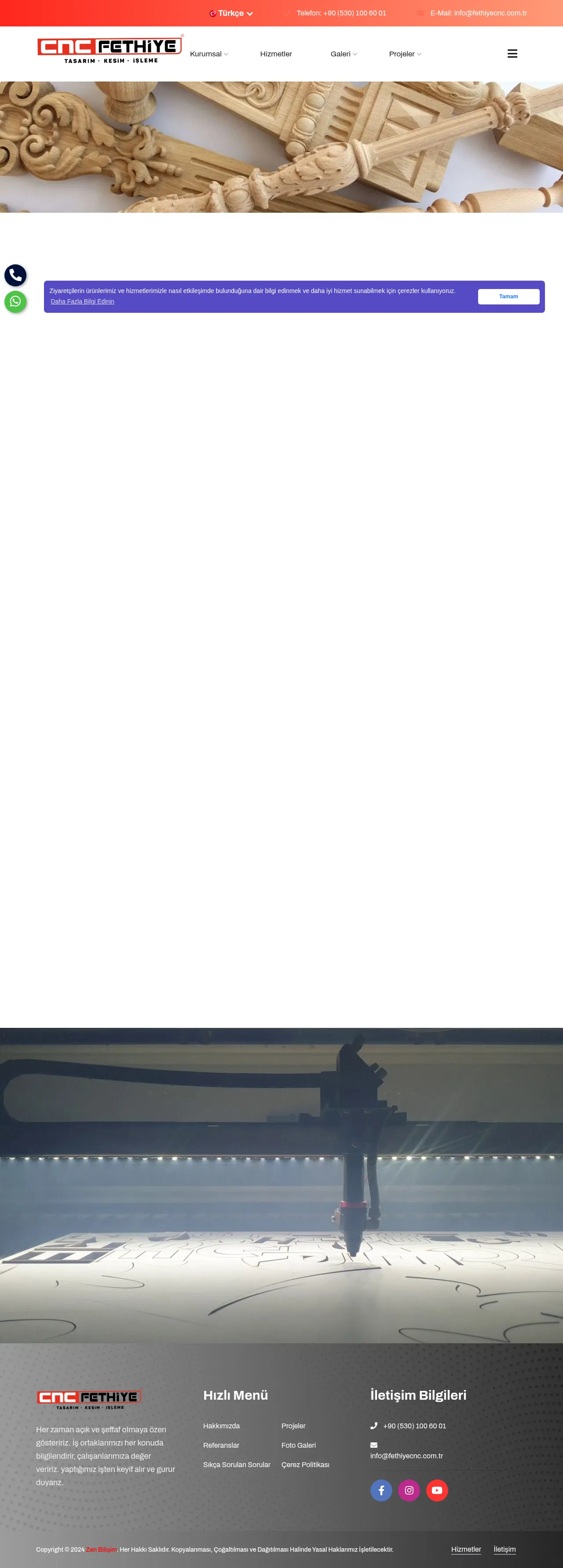 Fethiye CNC, operated by Sekon Yapi Insaat Taahhut Mobilya Dekorasyon, is a manufacturing company specializing in CNC precision cutting and fabrication services. The company provides contract manufacturing for both domestic and international clients, utilizing professional-grade equipment for diverse projects. Their core capabilities include wood carving, complex material cutting, and decorative furniture component production. With an emphasis on precision workmanship and efficient lead times, they cater to various decorative and industrial interior needs. The firm maintains a transparent service model, prioritizing high-quality output and technical expertise across all client engagements.