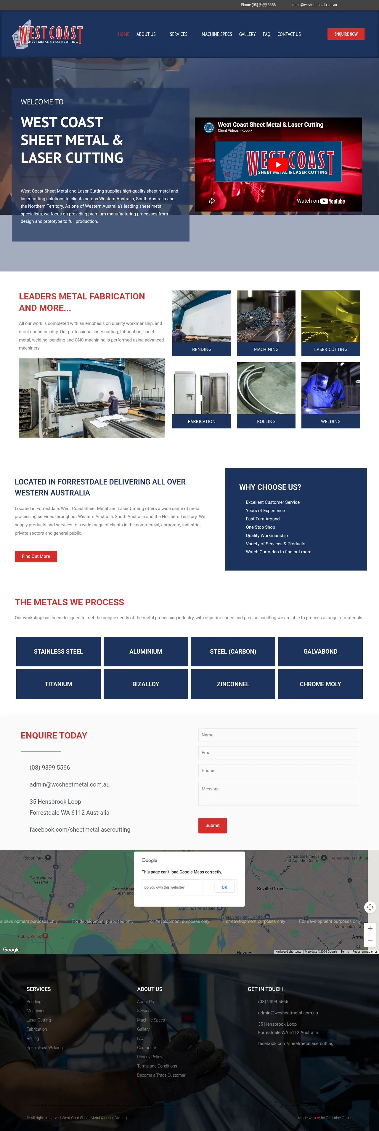 West Coast Sheet Metal and Laser Cutting is a comprehensive metal fabrication facility based in Forrestdale, Western Australia. The company specializes in precision laser cutting, CNC machining, welding, and sheet metal forming for a diverse range of commercial, industrial, and private sector clients. Equipped with advanced 6kW fiber laser and CNC press technology, the business provides high-quality manufacturing solutions including bending, rolling, and complex metal assembly. Their workshop is staffed by experienced tradespeople dedicated to professional workmanship and strict quality control. The company serves clients across Western Australia, South Australia, and the Northern Territory, offering both large-scale production and general jobbing services.