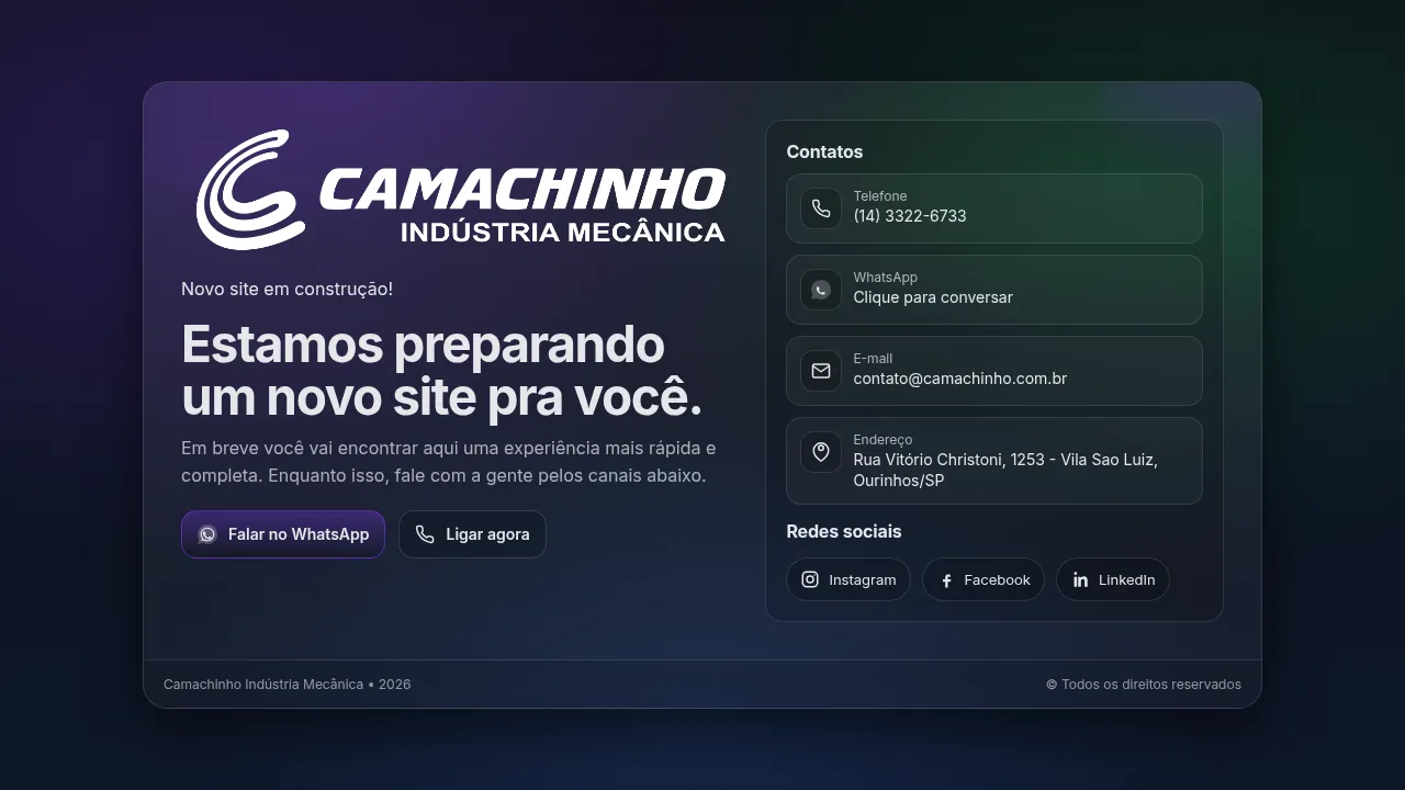 Camachinho Indústria Mecânica is a manufacturing company providing industrial mechanical solutions. The facility specializes in precision machining and metal fabrication services to support various industrial sectors. The organization focuses on delivering consistent quality through structured mechanical processes and technical expertise. By maintaining professional standards in industrial production, the company serves as a reliable partner for machining requirements in the region. Their operational approach centers on precision, reliability, and supporting the needs of the local industrial manufacturing market.
