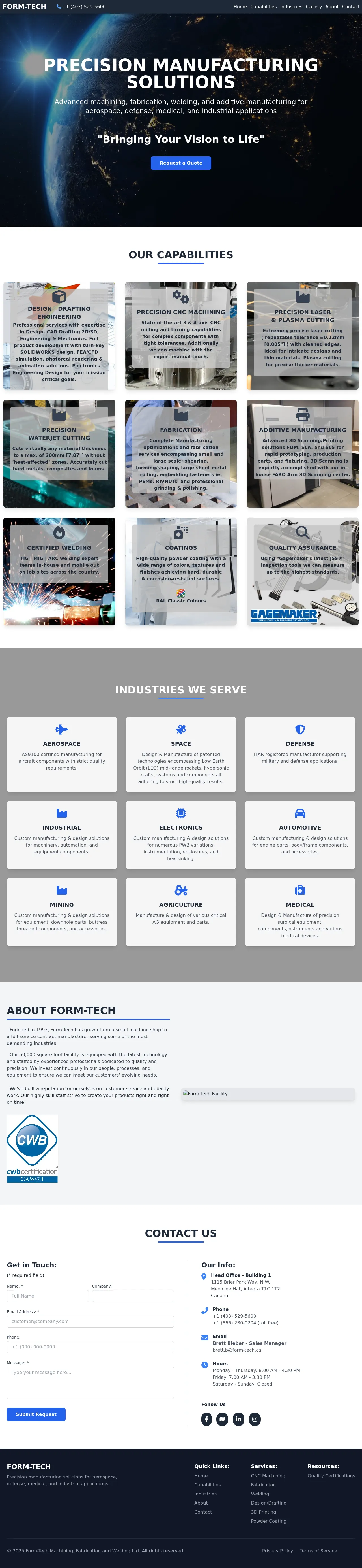 FORM-TECH is a precision manufacturing provider serving the aerospace, defense, medical, and industrial sectors. The company specializes in advanced machining, fabrication, welding, and additive manufacturing solutions. Their facility supports complex production requirements, including rapid prototyping and high-precision component fabrication. With expertise in laser and waterjet cutting, they offer versatile processing for diverse materials. FORM-TECH maintains strict quality standards to support mission-critical applications and military-grade components.