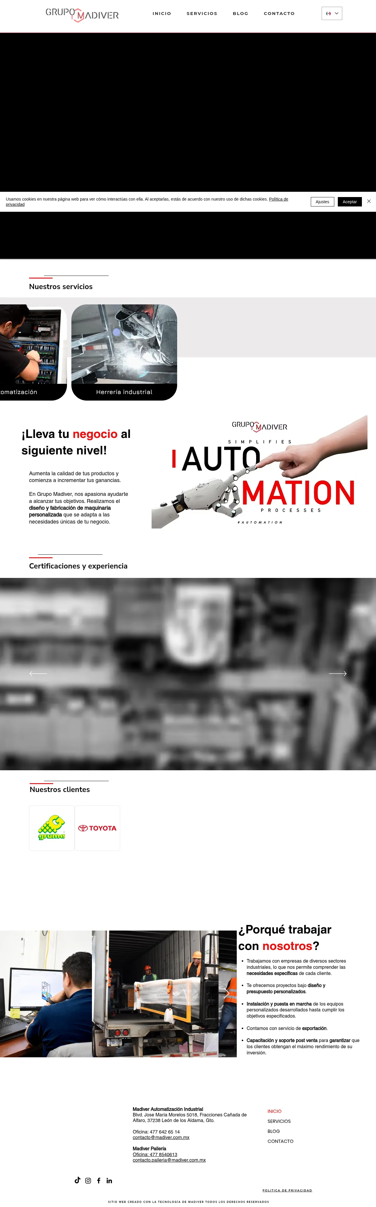 Grupo Madiver specializes in industrial automation, machinery fabrication, and metal structures. Located in León, Guanajuato, the company provides comprehensive services including CNC machining, industrial ironwork, and precision laser cutting. They support diverse industrial sectors with custom machinery design, system installation, and post-sale technical support. Additionally, the company offers certified professional training and capacity development. Their operations focus on enhancing production quality and operational efficiency through tailored engineering solutions.