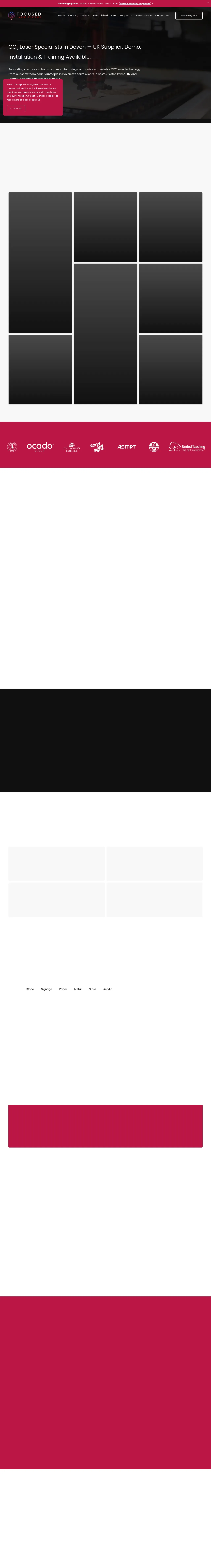 Focused Laser Systems is a UK-based provider of CO2 laser technology, offering a range of machines designed for precision engraving, marking, and cutting. They serve a diverse client base including educational institutions, creative professionals, and manufacturing sectors such as aerospace, automotive, and signage. Beyond equipment sales, the company provides comprehensive installation, operator training, and lifetime technical support. Their services also include routine maintenance, custom service packages, and nationwide repairs for various laser models. The company operates from a North Devon showroom and provides both in-person and virtual demonstrations to assist clients in selecting the appropriate technology for their specific material processing requirements.