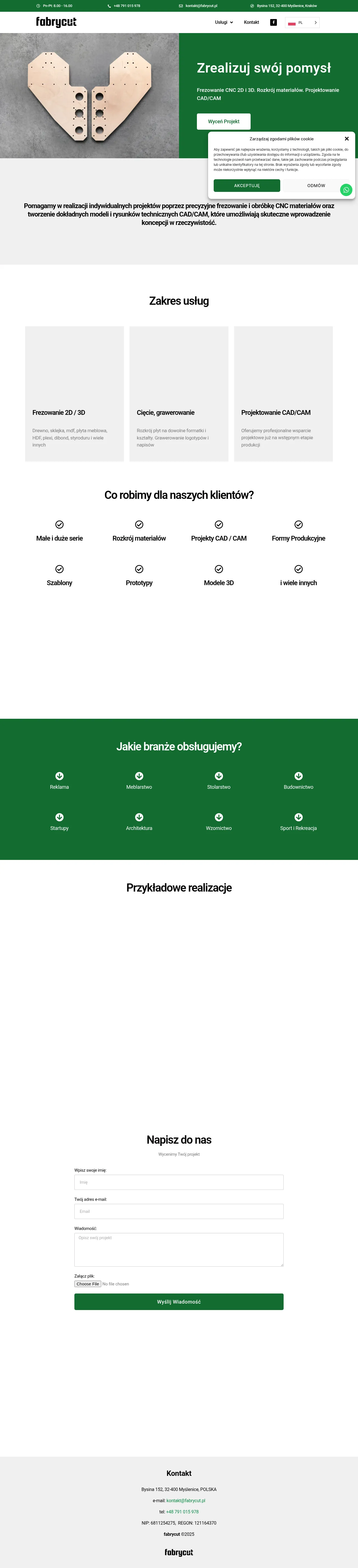 Bysina 152, 32-400 Myślenice, Poland, Bieńczyce, Lesser Poland Voivodeship, Republic of Poland791 015 978kontakt@fabrycut.plhttps://www.fabrycut.pl/