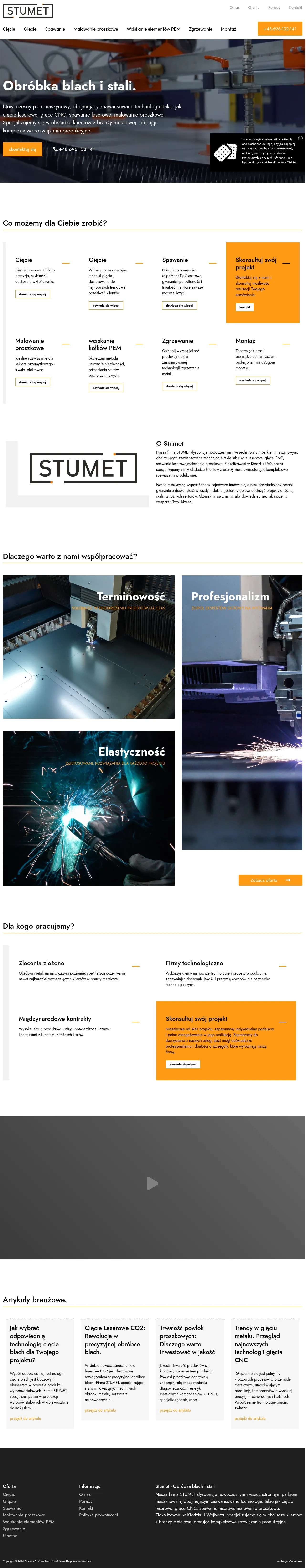 Stumet is a metal processing company based in Kłodzko and Wojbórz, specializing in the fabrication of steel and metal components. The company provides a range of manufacturing services, including laser cutting, CNC bending, welding, powder coating, and component assembly. They cater to diverse industrial sectors, offering custom solutions that integrate steel with materials such as wood, glass, and stone. Stumet focuses on precision engineering, ensuring high quality and durability across all production stages. Their services are designed to accommodate projects of varying scales with a focus on individual client requirements and technical detail.