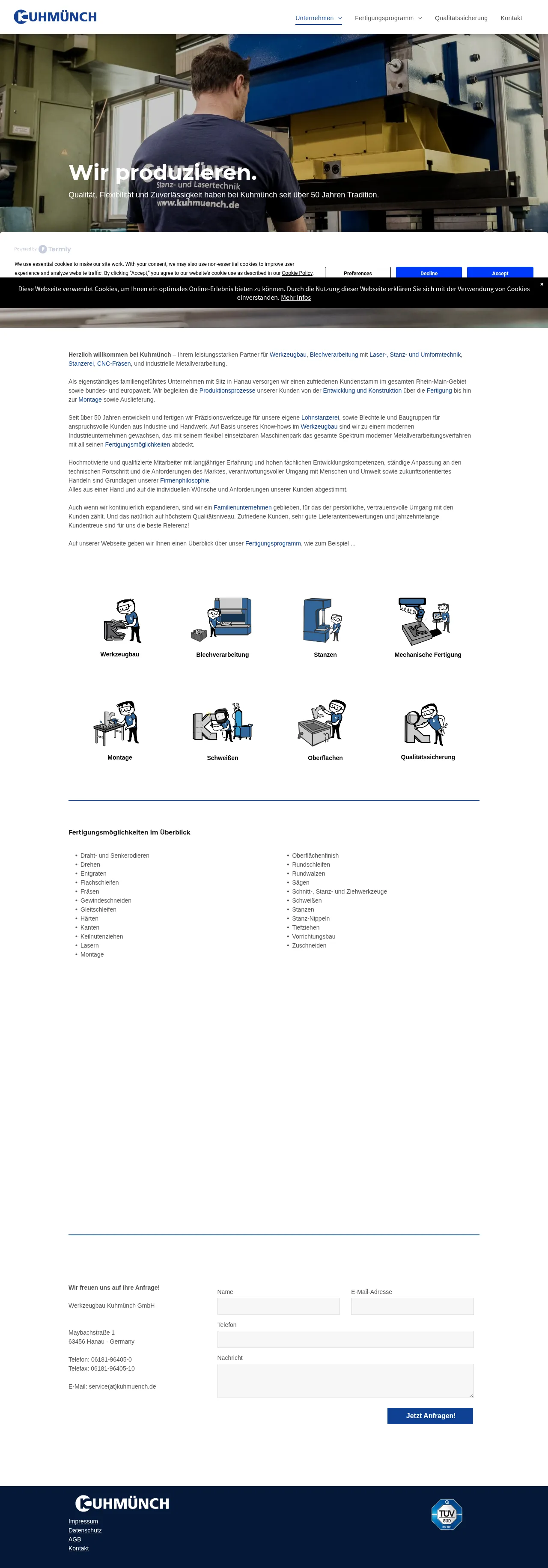 Werkzeugbau Kuhmünch GmbH is an independent, family-owned industrial manufacturing company based in Hanau, Germany. With over 50 years of experience, the company specializes in the development and production of precision tools, as well as sheet metal parts and assemblies for clients in the industrial and trade sectors. Their facility offers a comprehensive range of metalworking services, from initial design and construction to manufacturing, assembly, and logistics. The firm serves customers throughout the Rhine-Main region, as well as across Germany and Europe, focusing on high-quality technical standards and flexible production processes.