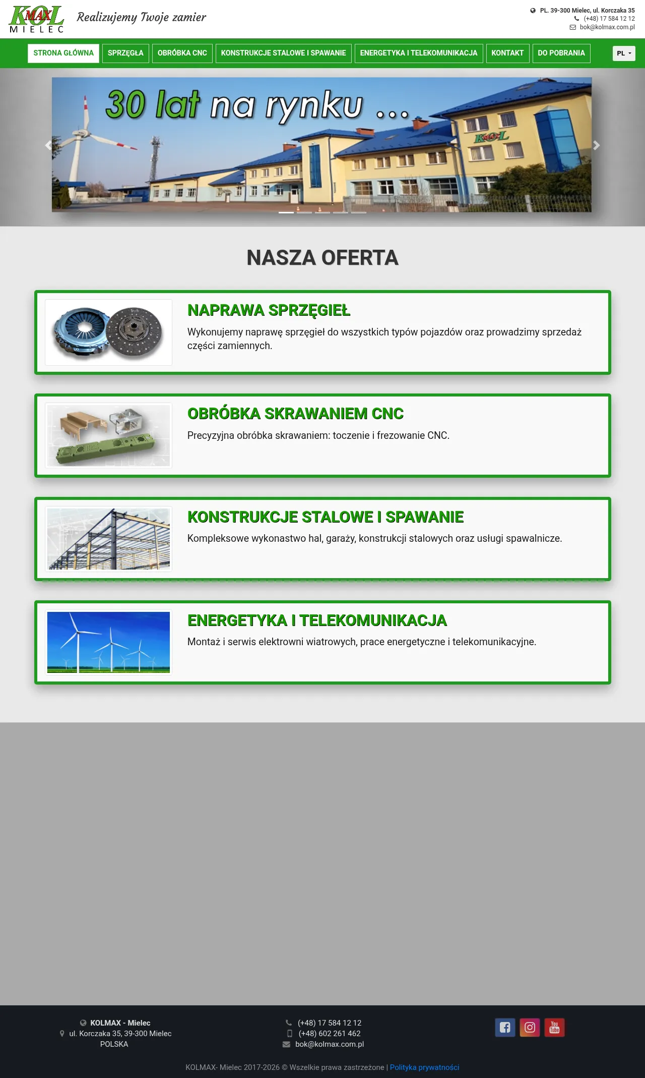 KOLMAX is a multi-disciplinary manufacturing company based in Mielec, Poland. The company specializes in automotive maintenance, specifically the repair and supply of clutch systems for all vehicle types. Their industrial capabilities include precision CNC machining, encompassing both turning and milling operations. Furthermore, KOLMAX provides comprehensive steel fabrication services, including the design and construction of industrial halls, garages, and welding services. They also support the energy and telecommunications sectors through the installation and maintenance of wind power infrastructure.