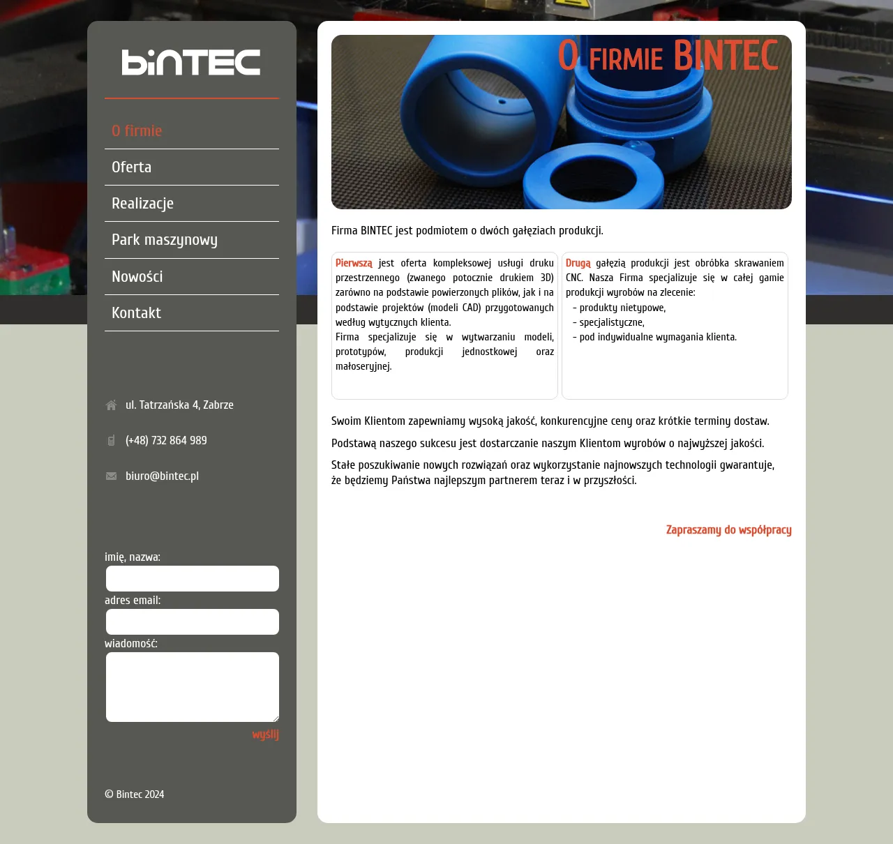BINTEC is a specialized manufacturing company that operates across two primary production divisions. The firm focuses on delivering custom, non-standard, and highly specialized products tailored to meet individual client specifications. They emphasize providing high quality, competitive pricing, and efficient delivery timelines for all projects. The company serves a variety of industrial sectors requiring bespoke manufacturing solutions. BINTEC maintains a professional commitment to precision and client-oriented service throughout their production processes.