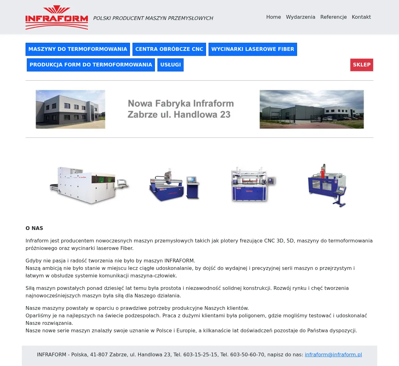 INFRAFORM is a Polish manufacturer specializing in industrial machinery, including thermoforming machines, CNC machining centers, and fiber laser cutting systems. The company provides end-to-end manufacturing solutions, from initial CAD design and mold production to final component fabrication. Their equipment features advanced Mitsubishi Electric control systems and high-precision components to ensure stability, efficiency, and high-quality processing. In addition to hardware production, the company offers precision milling and laser cutting services for diverse industrial applications. They support clients throughout the lifecycle of their machinery with professional service, maintenance, and technical consulting.