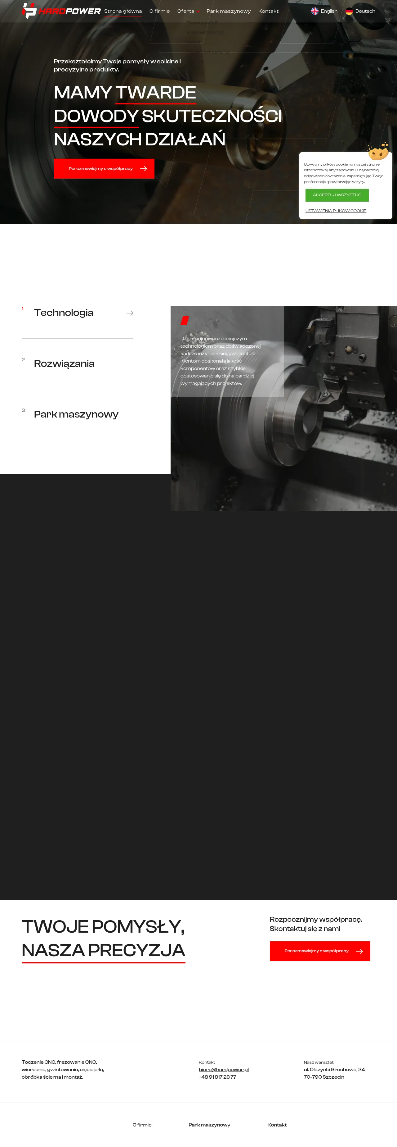 HARDPOWER Sp. z o.o. is a precision machining company based in Szczecin, Poland, supplying customers across Europe. The company uses advanced CNC technologies and an experienced engineering team to manufacture metal and plastic components, from one-off prototypes to small and large series production. Core capabilities include turning, milling, drilling, threading, cutting, abrasive finishing and assembly. HARDPOWER emphasizes attention to detail and rapid adaptation to demanding projects.