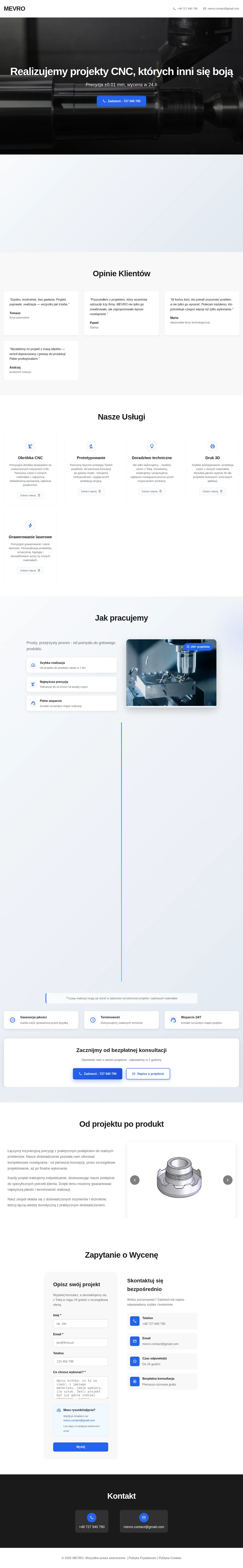 A precision manufacturing workshop specializing in CNC machining, rapid prototyping and small-series production. Services include 3D printing and laser engraving, with engineering support from concept through to finished parts. The company emphasizes dimensional accuracy and quality control, offering measurement reports and tested prototypes before final production.