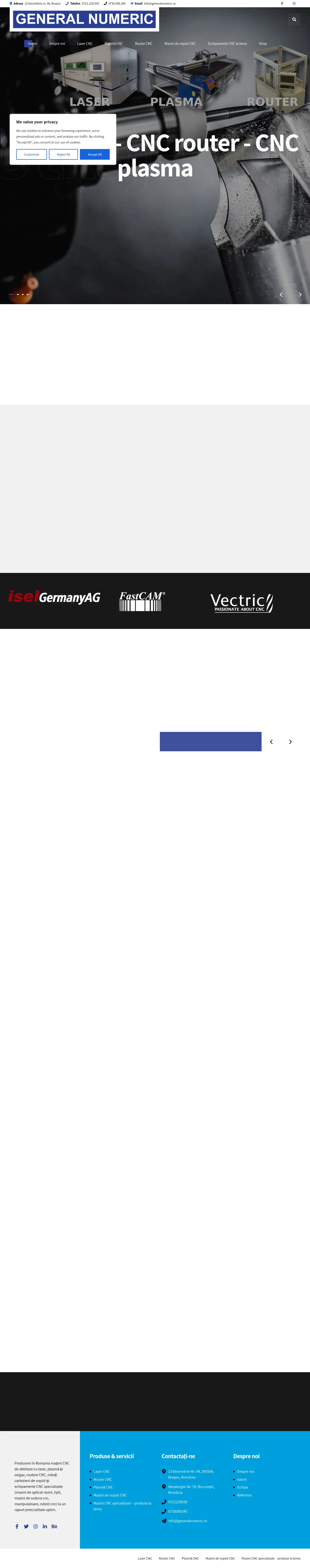 General Numeric is a Romanian manufacturer specializing in the design and production of high-precision CNC machinery, including routers, plasma cutters, fiber laser systems, and automated painting robots. The company provides custom-engineered solutions for diverse sectors such as automotive, aviation, and industrial manufacturing. With over 15 years of experience, they produce equipment using high-quality components sourced from European partners. Beyond hardware manufacturing, General Numeric offers comprehensive services ranging from technical consulting and installation to training and post-warranty support. Their facilities in Brașov and Bucharest are equipped with advanced calibration tools to ensure reliability, performance, and compliance with international standards.