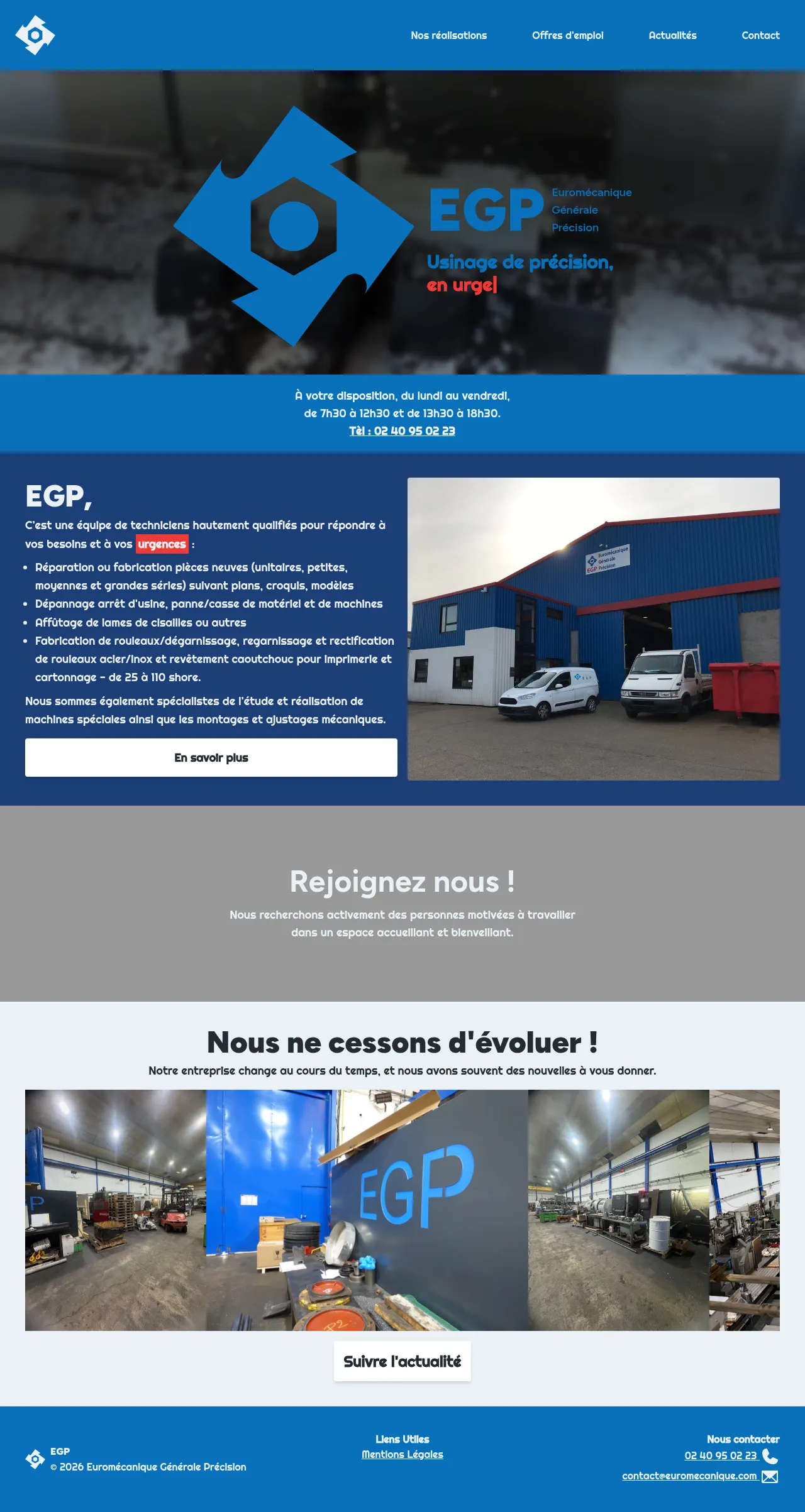 EGP Euromecanique provides comprehensive mechanical engineering and manufacturing solutions for industrial clients. The company specializes in the design and construction of custom machinery, as well as high-precision mechanical assembly and adjustment services. They offer manufacturing and repair capabilities for individual components and serial production runs based on client designs or samples. Additionally, the firm supports plant operations with emergency maintenance, factory repairs, and specialized sharpening services. They also provide technical services for the printing and packaging industries, including the fabrication and refurbishment of industrial rollers.