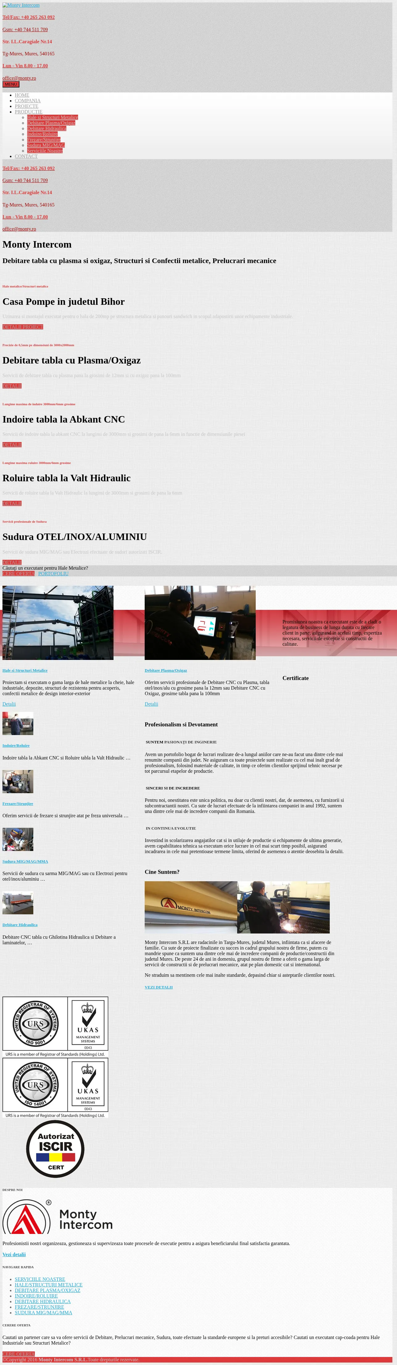 Monty Intercom is an industrial manufacturing firm specializing in metal structures, industrial halls, and custom metal fabrication. The company provides a comprehensive range of services including CNC plasma and oxy-fuel cutting, mechanical machining, and professional welding for steel, stainless steel, and aluminum components. They support clients through the entire production cycle, from project design and engineering to on-site assembly for industrial equipment housing and interior architectural elements. With a focus on high-precision output, the firm serves diverse sectors requiring structural integrity and metal fabrication solutions. Their facility is equipped to handle complex projects, ensuring consistent quality through rigorous production management and technical oversight.