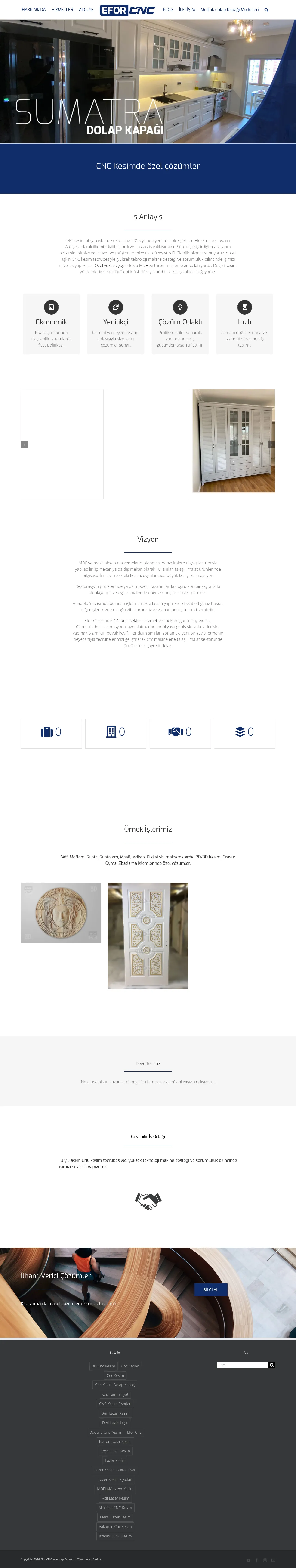 Efor Cnc provides CNC machining services with a focus on three-dimensional cutting and wood processing. The company offers laser cutting and CNC carving for applications in automotive, lighting, furniture and decoration. It machines MDF and solid (masif) wood for interior and exterior components using computer-controlled equipment.