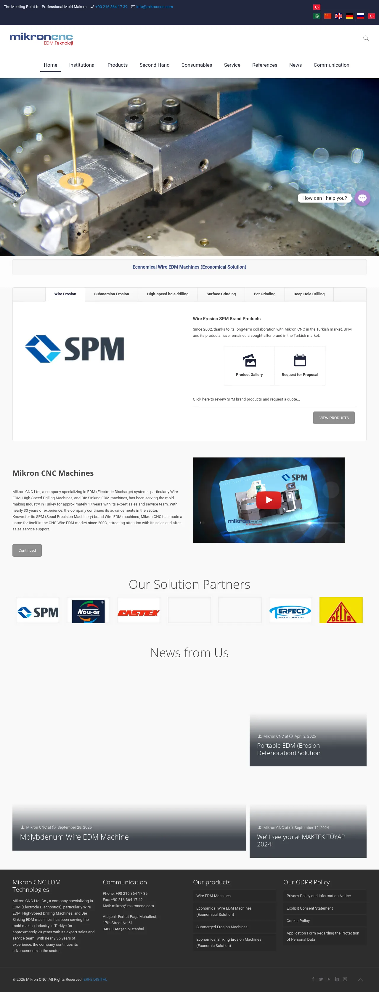 Mikron CNC supplies and services electrical discharge machining (EDM) and related machine tools for the mold-making sector in Turkey. The company offers wire EDM, sinker EDM, EDM drilling and a range of grinding machines while representing brands such as SPM, NEU-AR, CASTEK, PERFECT, DELTA and HONG-JI. It provides sales and after-sales support and has maintained a long-standing presence in the Turkish market.