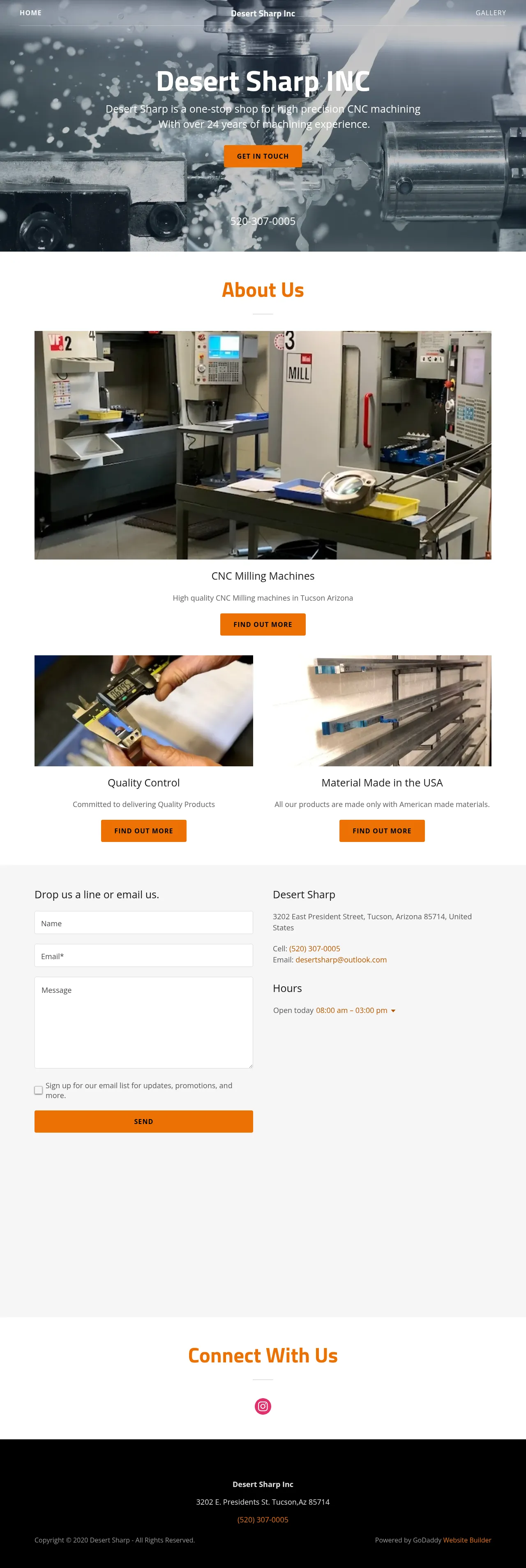 Desert Sharp is a Tucson, Arizona company that provides precision CNC machining and milling services. The firm specializes in high-precision CNC milling and performs quality control on machined products. Desert Sharp uses U.S.-sourced materials and draws on more than 24 years of machining experience.