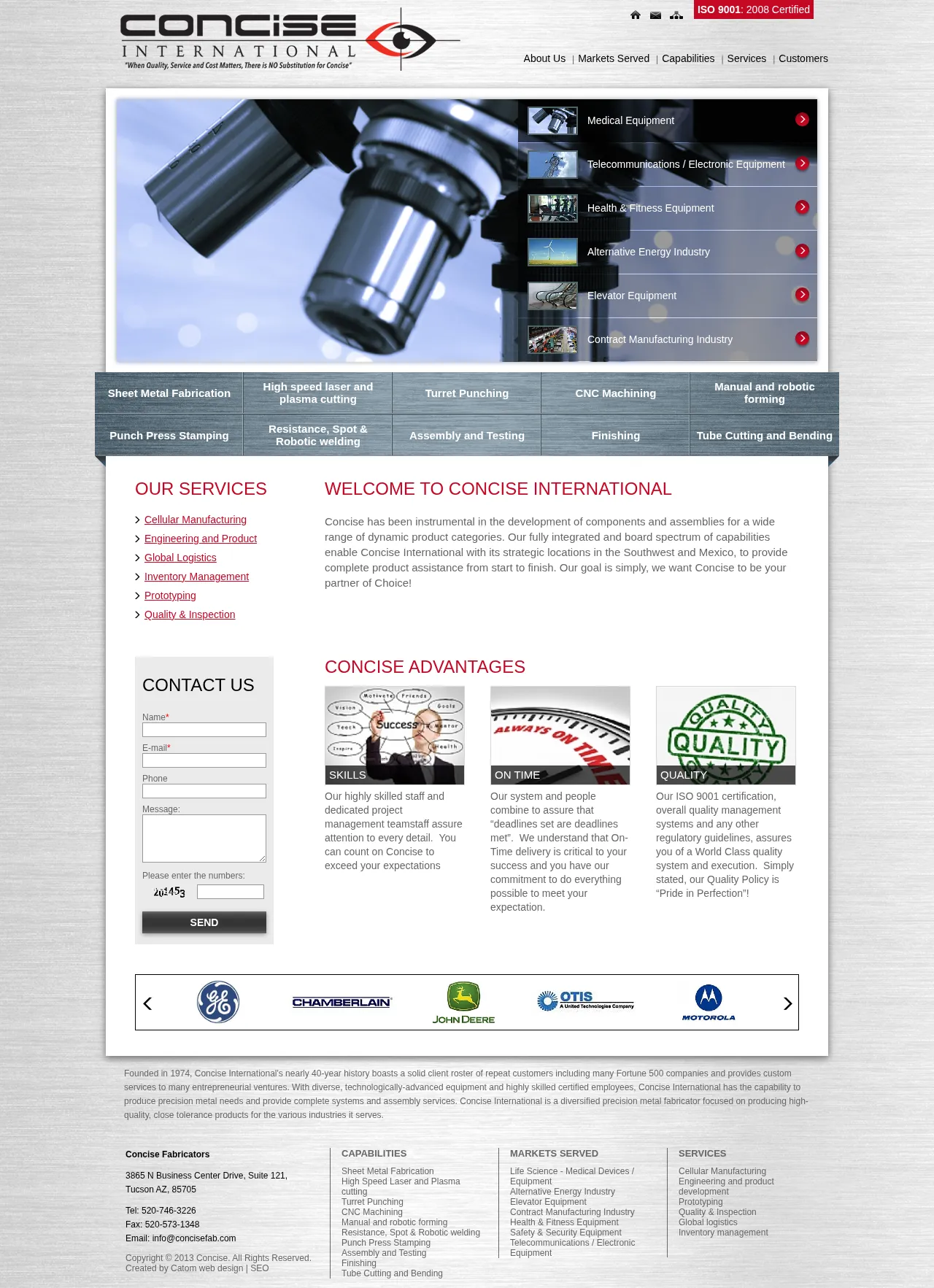 Concise International is a vertically integrated precision metal fabricator specializing in close‑tolerance parts and assemblies. The company provides machining, welding and electro‑mechanical assembly services and supports full product integration and testing. With nearly 40 years of operations, Concise serves a mix of Fortune 500 clients and smaller ventures across medical, electronics, telecommunications, elevator, alternative energy, construction equipment, transportation and security industries. Concise operates facilities in the U.S. Southwest and Mexico and offers turnkey contract manufacturing and assembly services.