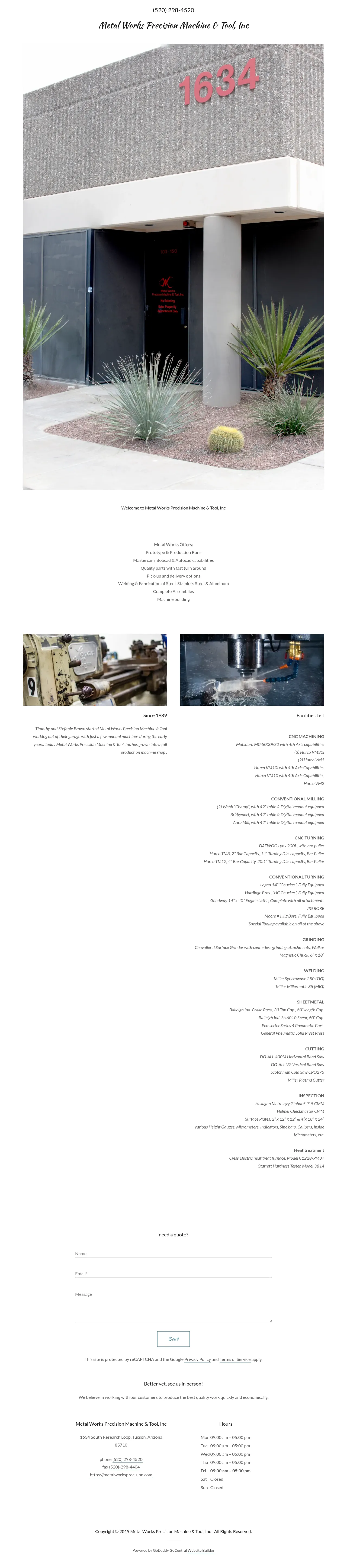 1634 S Research Loop, Tucson, AZ 85710, USA, Tucson, Arizona, United States(520) 298-4520https://metalworksprecision.com/